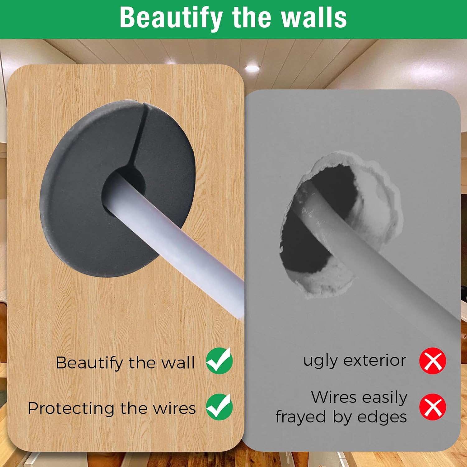 - Effective Functions: Our cable entry grommets protect your cables and reduce wear and tear, while the wall hole covers are discreet and provide a clean and professional look