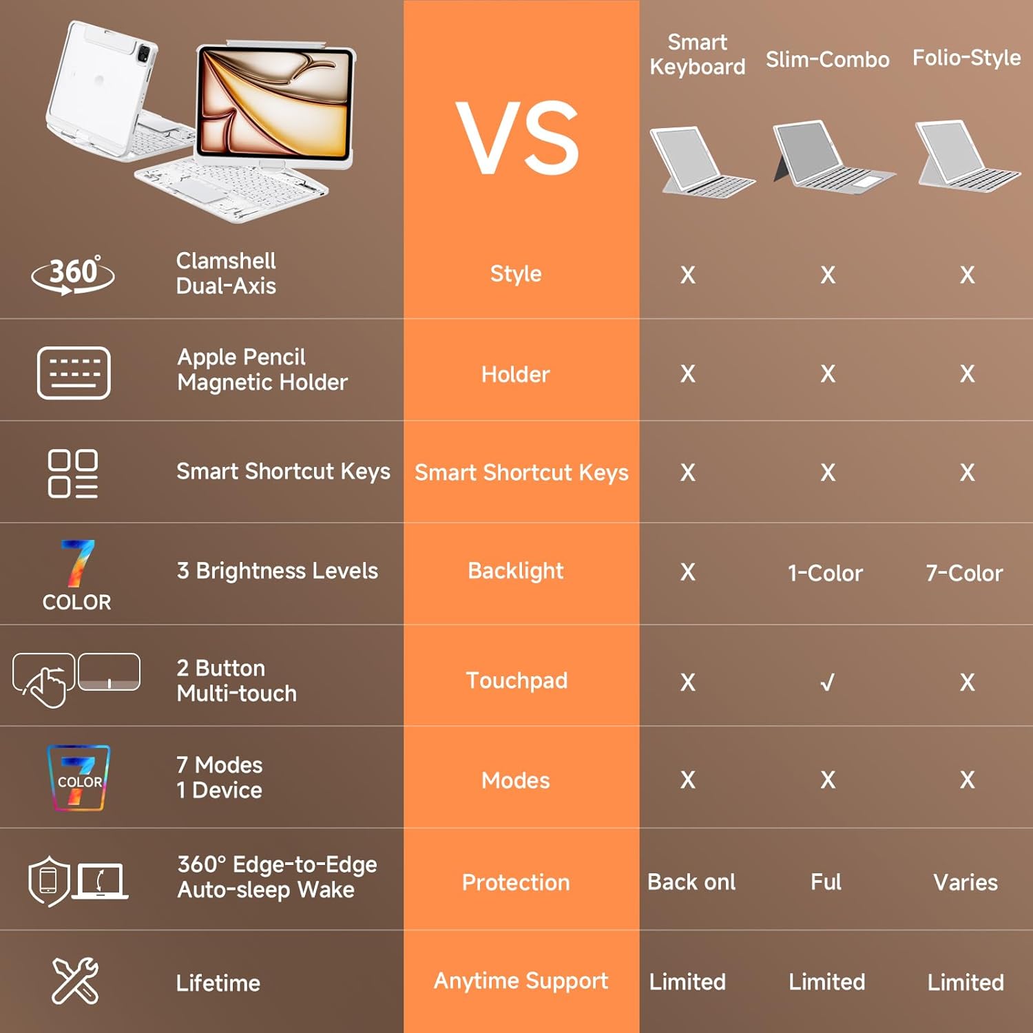 - 【Flexible Pencil Slot + Silent Typing】: The flexible pen holder supports magnetic attachment, while the quiet scissor-switch keys provide a silent and responsive typing experience.