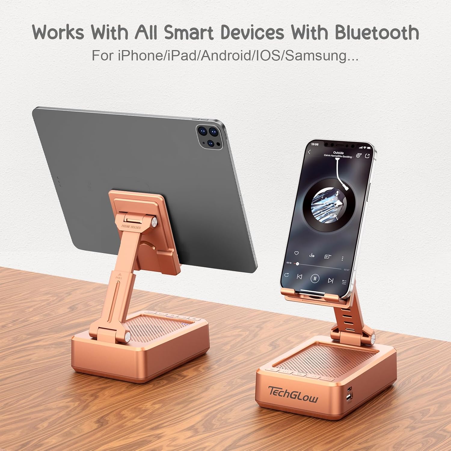 TechGlow Gifts for Men Women Foldable Cellphone Stand with Bluetooth Speaker and Power Bank Birthday Gift Idea for Mom Dad Cool Gadget Tech Gifts-Rose Gold