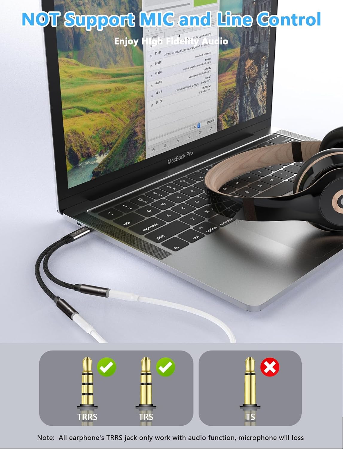 - Functional & Practical: With compact and lightweight design, the usb c headphones splitter 2 way is ideal for your road trips and plane rides. NOTE: This headset splitter doesn't support a Microphone and inline volume control on the headset