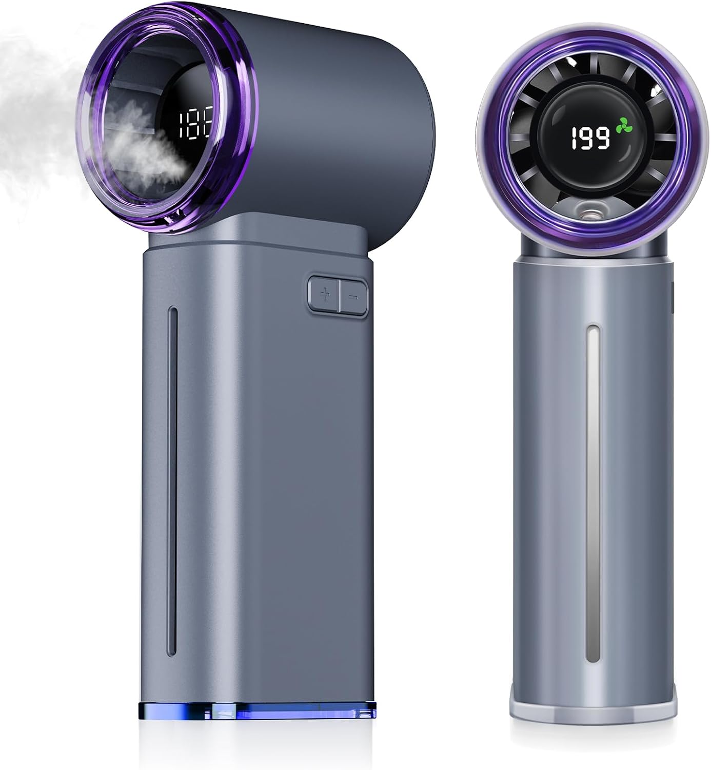 Portable Misting Fan - Mini Handheld Fan - 5000mAh Rechargeable Personal Mister Fans with Digital Display, 1-199 Speeds Adjustable, Birthday Gifts for Women Men Travel/Outdoor/Home/Office (Grey)