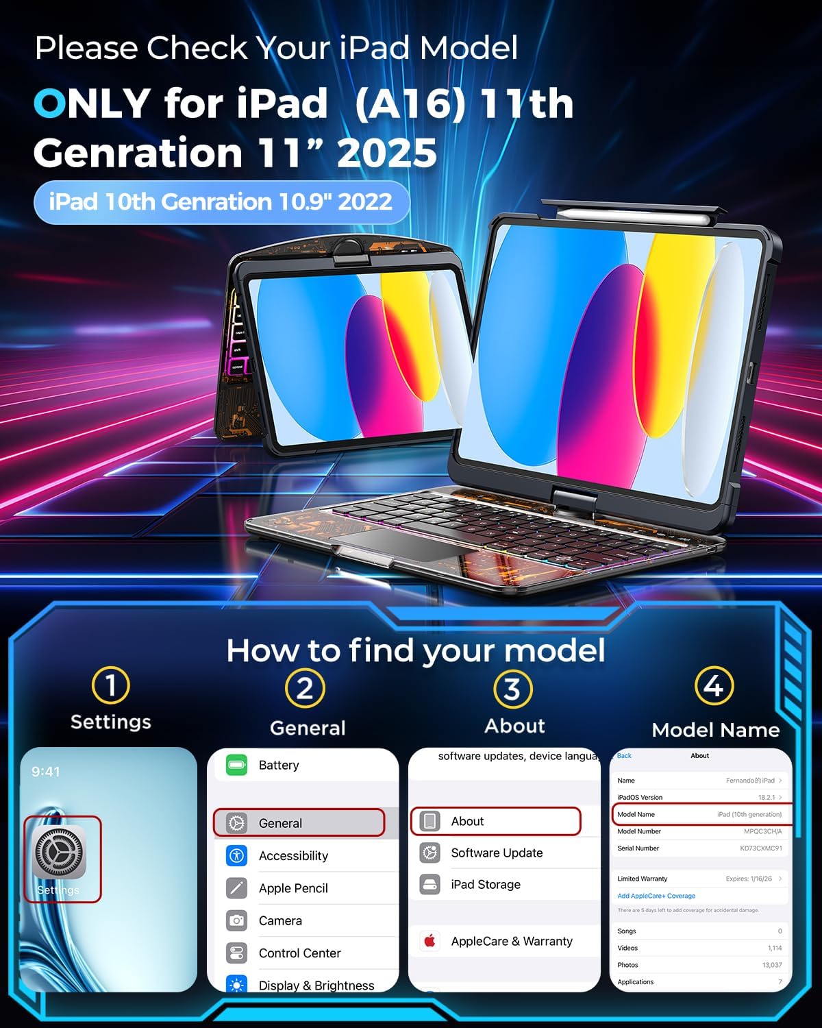 - Compatibility: Perfectly designed for the iPad (A16) 11th Generation 2025 (Model: A3354/A3355/A3356 ) & 10th Generation 10.9" 2022 (Model: A2757/A2777/A2696). Please ensure the model number before making your purchase as it is not compatible with any other devices