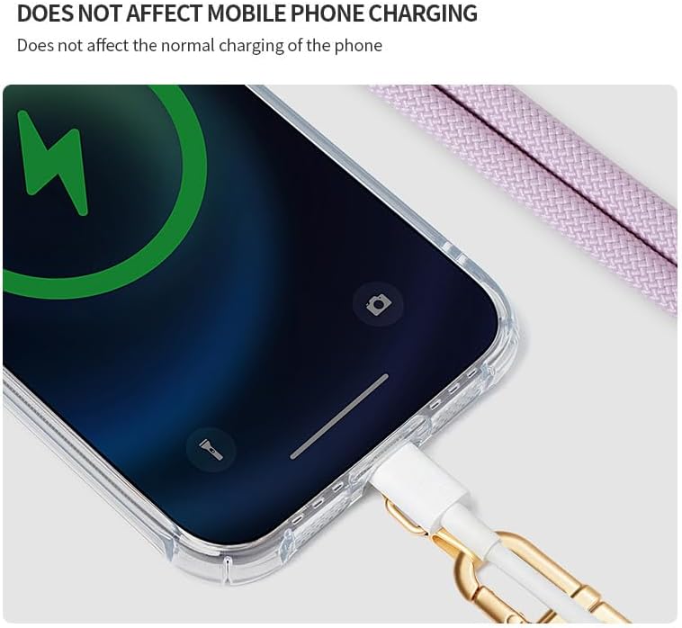 - 【EASY TO INSTALL】: No tools required, simply insert the pad through the charging hole of the fully covered case, then insert it into your phone and attach it to the lanyard, and it doesn't interfere with the wired and wireless charging of the phone