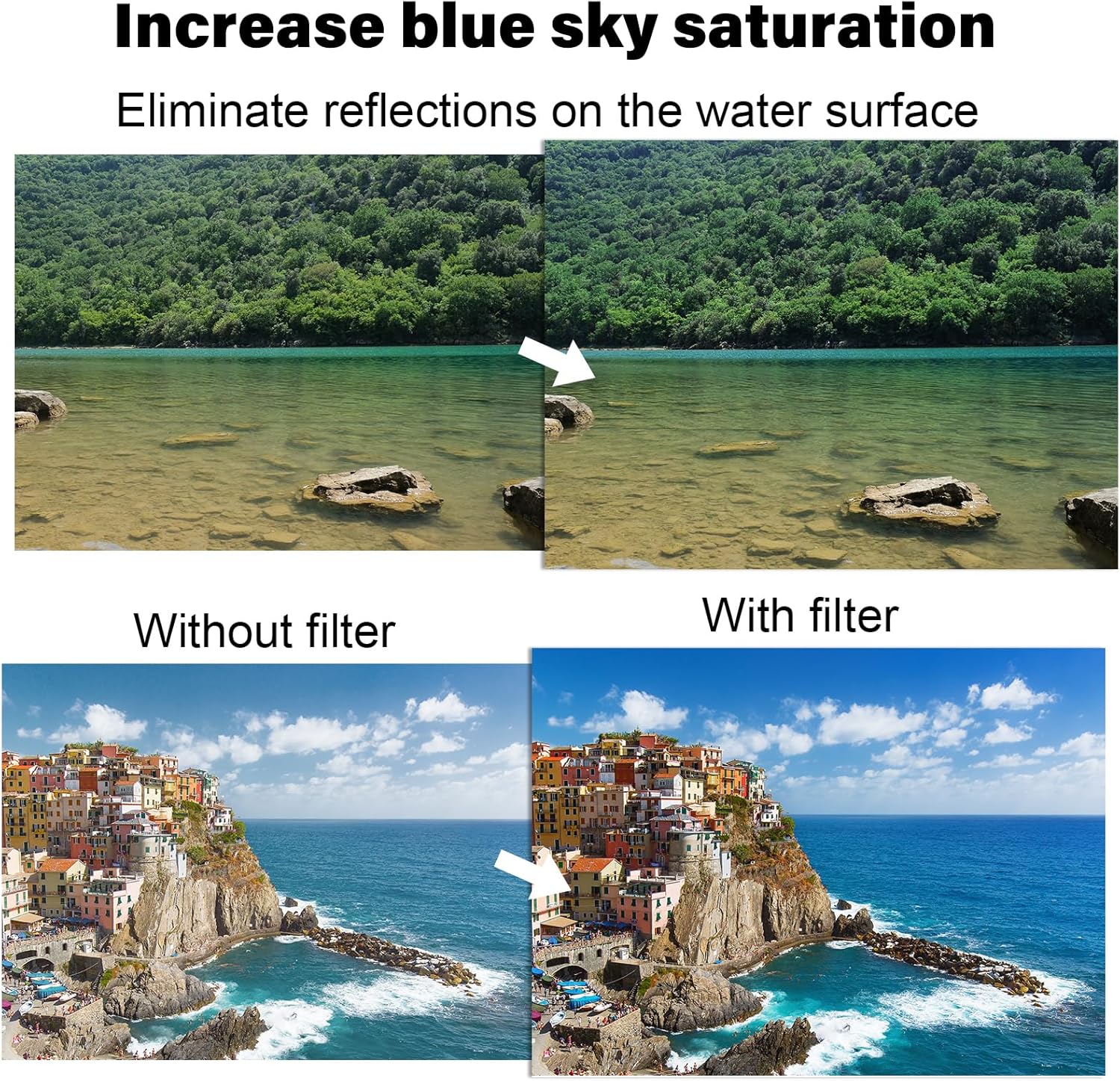 - 52mm CPL Filter Function - Transform your smartphone into a DSLR-like camera! This CPL filter eliminates reflections from water, glass, and skies while enhancing color saturation and contrast, perfect for capturing vibrant landscapes, portraits, and dynamic scenes.