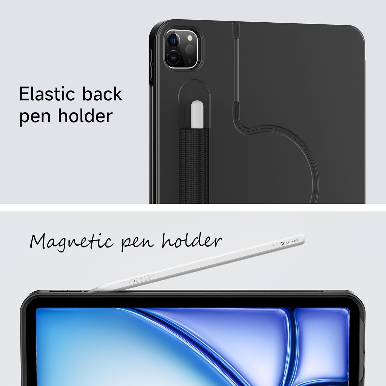 - [Compatibility]: HOU Rotating Detachable Keyboard is designed specifically for 13-inch & 12.9-inch iPads, compatible with iPad Air 13" M3 2025, iPad Air 13" M2 2024, iPad Pro 13" M4 2024, and iPad Pro 12.9-inch (6th/5th/4th/3rd Gen).