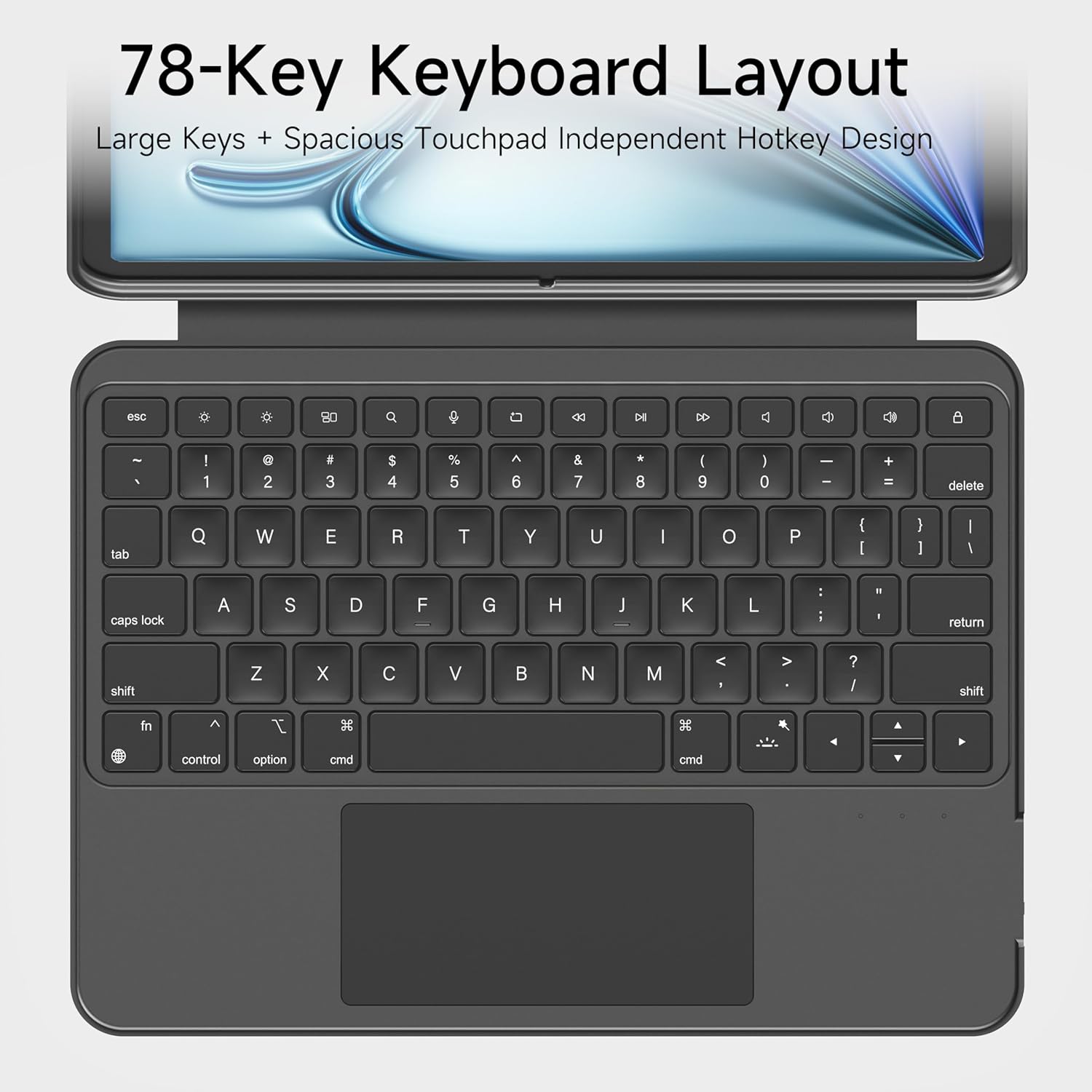 - [Responsive Control] The large, high-precision touchpad on this iPad keyboard enhances navigation with full iOS gesture support. From swiping to zooming, it ensures fluid operation for browsing, editing, or multitasking with ease
