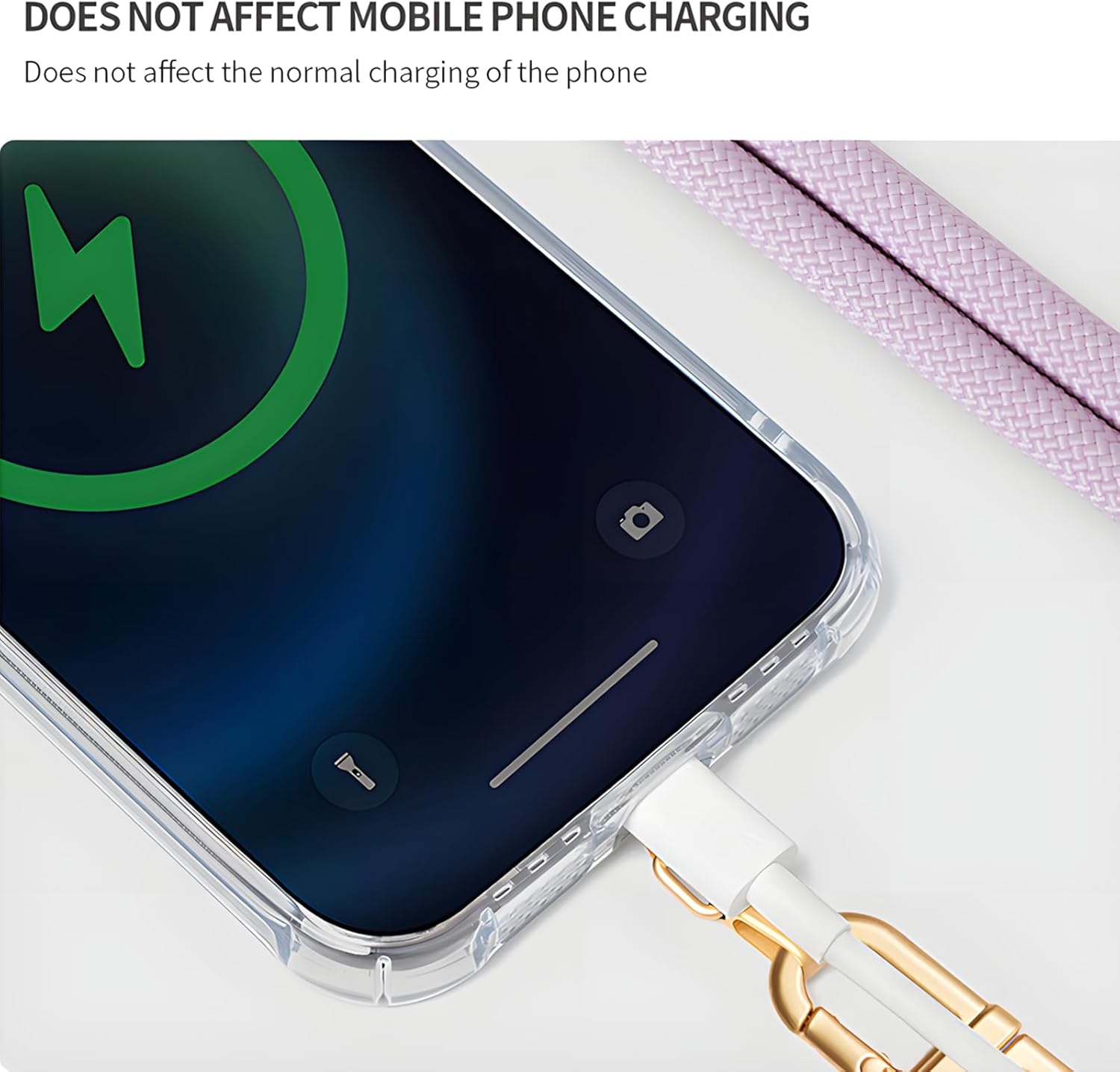 - Effortless Installation:Tool-free setup: Thread the washer through your full-coverage phone case’s charging port, insert into your device, and attach the lanyard—no interference with wired/wireless charging.Seamlessly integrates with enclosed phone cases.Universal compatibility: Works with iPhone, Android devices, and most 4.0"-7.0" smartphones.Note: Not compatible with open-face/half-coverage cases.