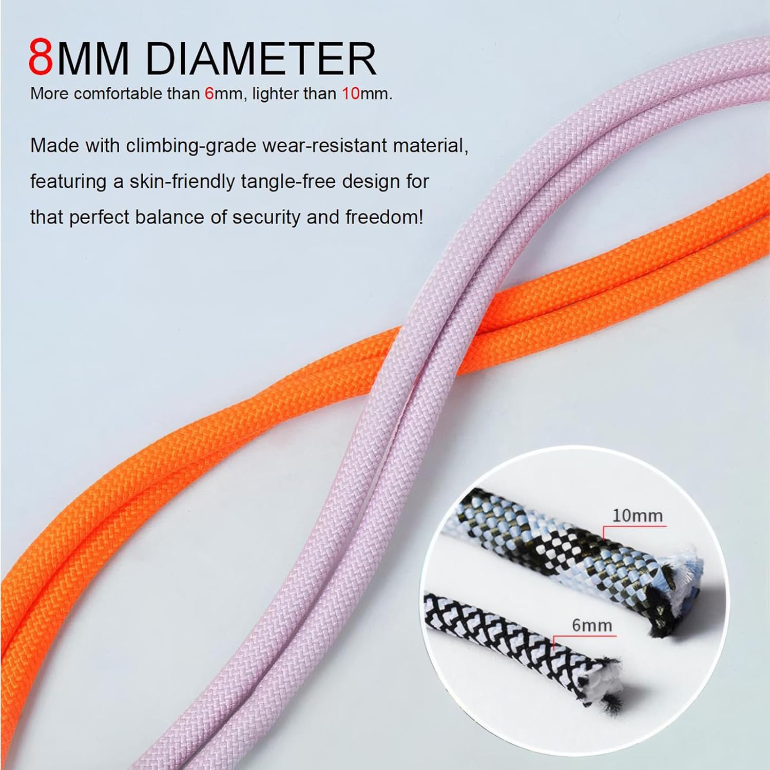 - Ergonomic Comfort:8mm thick cord balances strength with a skin-friendly feel.12-inch tangle-free length for hassle-free daily use.