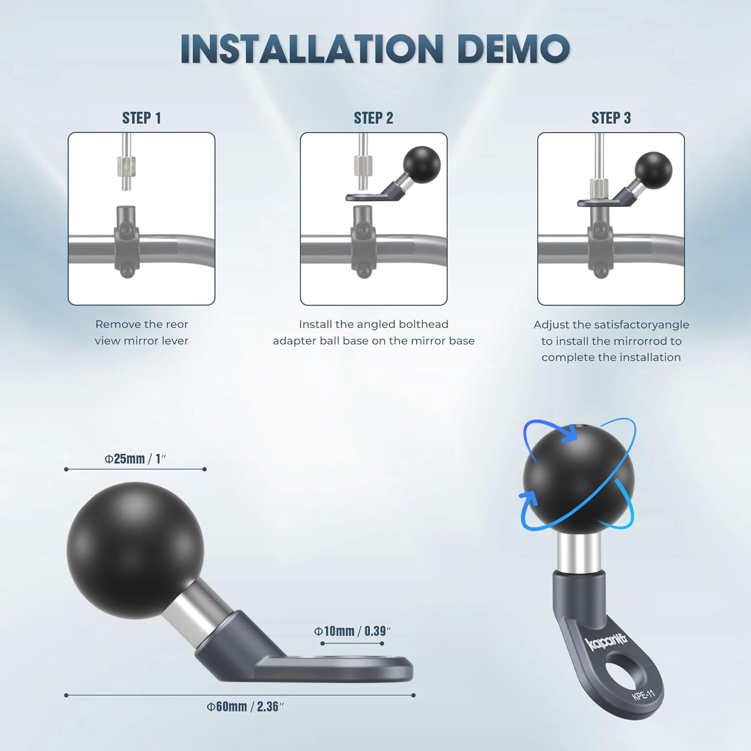 - Wide Applications: The Angled Bolt Head Adapter Ball Base is compatible with 1-inch ball seats and dual socket arms, and is also suitable for other devices with 1-inch rotary ball mounting modes, such as some navigation stands, action camera stands, and mobile phone stands
