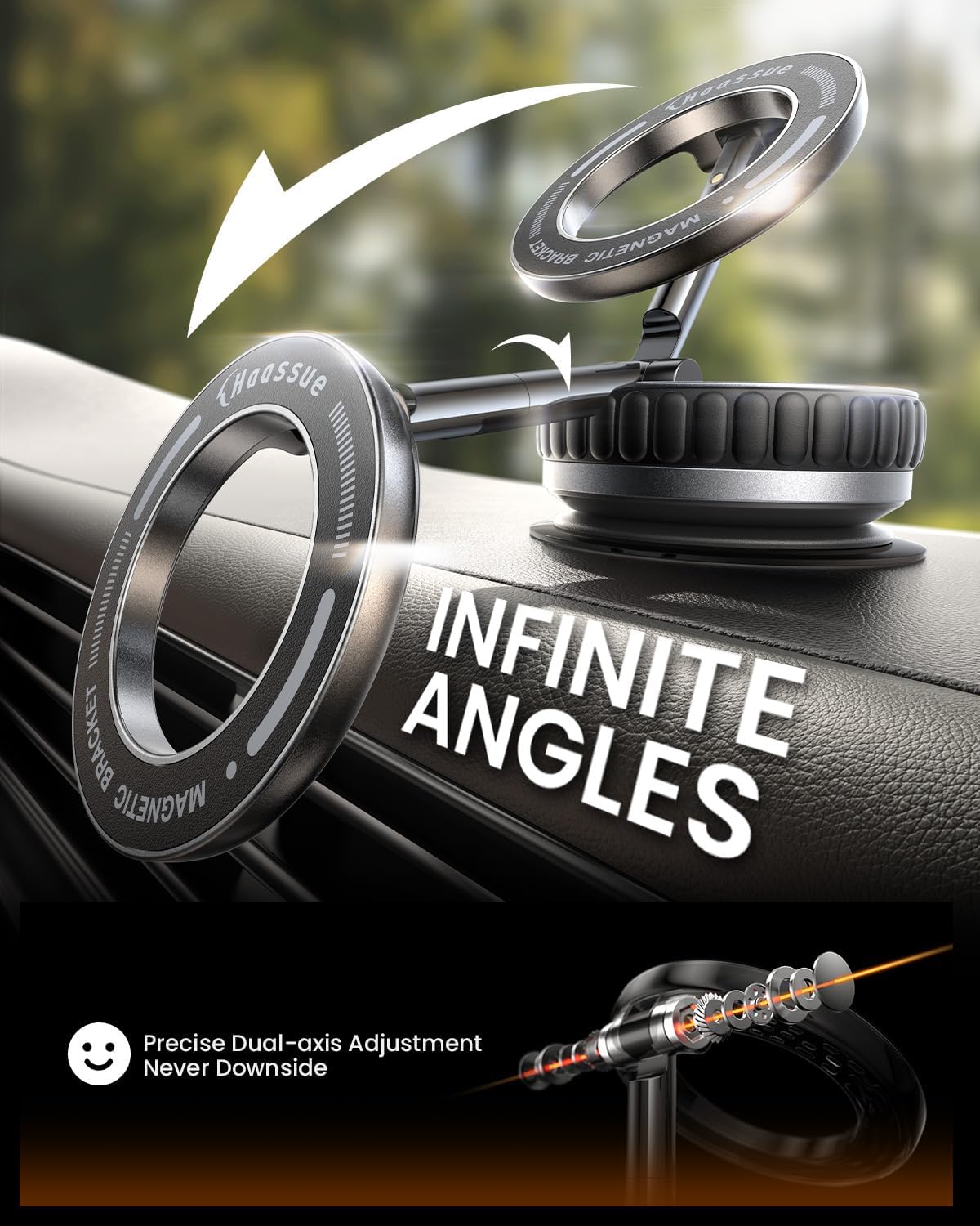 - 【Military-Grade Stability Meets Vibrant Style】Available in 4 energizing colors, this Magnetic car phone mount combines rugged performance with style. The automotive-grade rotating-lock suction (65% stronger than traditional models) clings securely to any smooth surfaces, while your chosen hue - from bold primaries to sophisticated neutrals - adds a pop of personality to your car interior