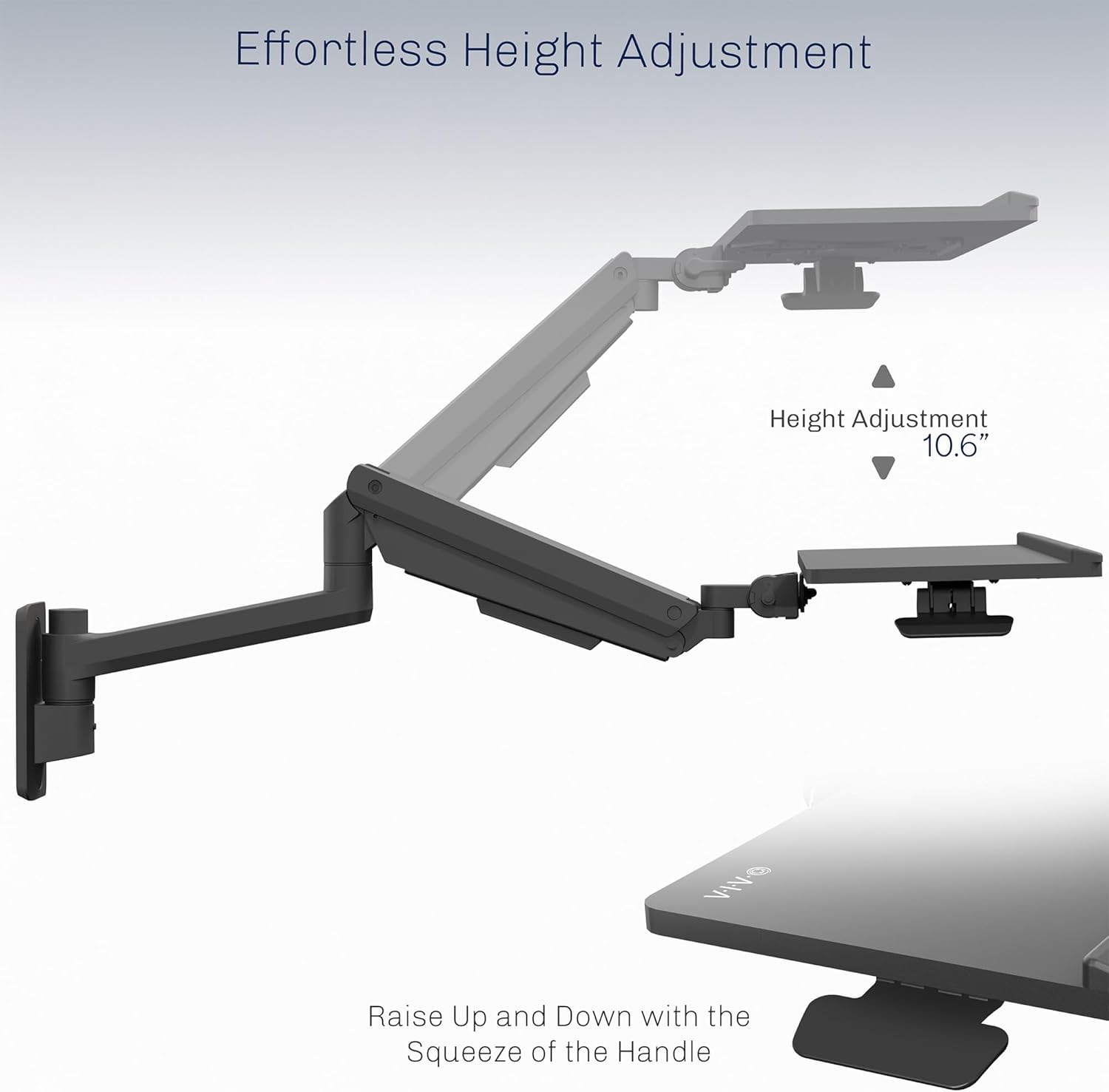 - Pneumatic Spring Lift: The sleek keyboard tray is supported by a powerful pneumatic arm that makes adjustments smooth and simple. Easily raise or lower your keyboard surface a total of 10.6” for a custom setup