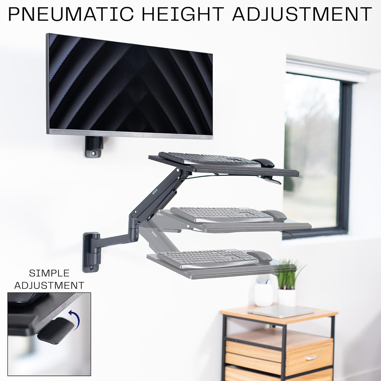 VIVO Sit-Stand 24 Inch Pneumatic Spring Keyboard and Mouse Tray Wall Mount, Counterbalance Height Adjustable Typing Platform, Ergonomic Tilt, Black, MOUNT-KB35C