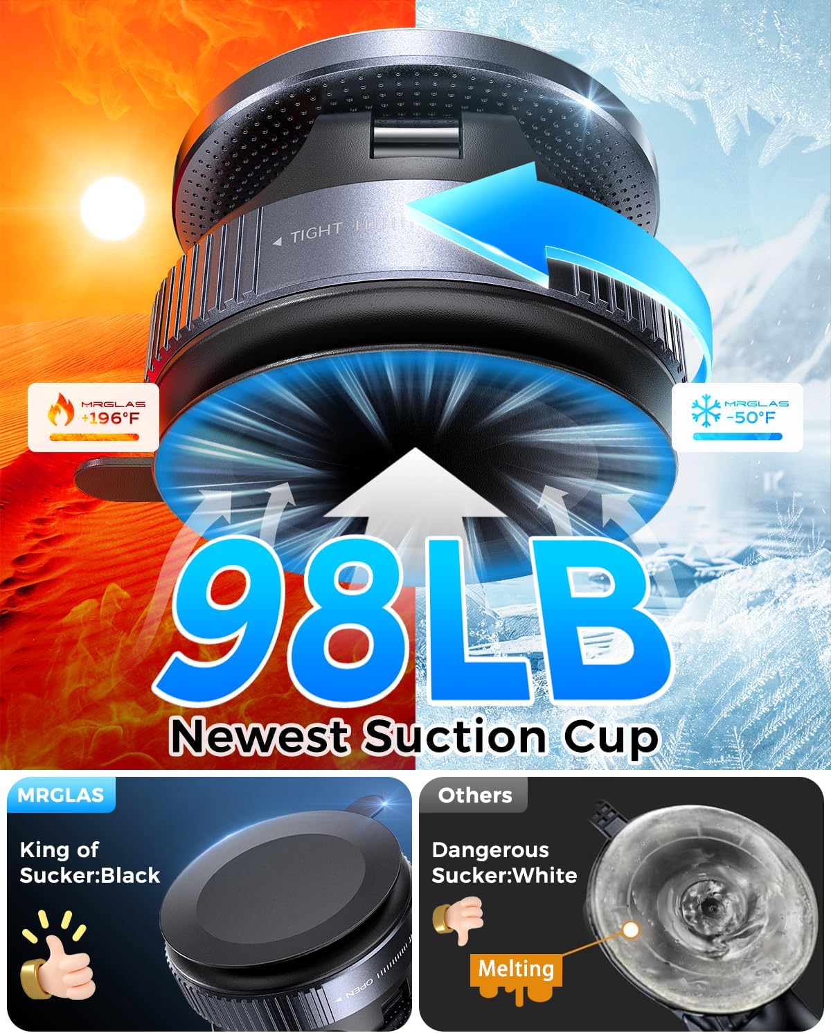 MRGLAS 2026 Upgraded Vacuum Magnetic Phone Holder, for Magsafe Suction Cup Phone Mount Car Truck Accessories for Women Men [98+LBS Suction & 2800gf Magnetic] Fathers Day for Gifts, 360° Adjustable