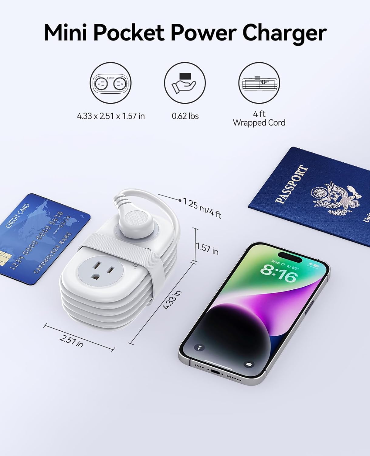 - 【Compact Size & Wrap-Around】The ORICO portable power strip has small size (4.33*2.5*1.6 in) with flexible 4ft retractable wrap-around extension cord. It easy to pack in your luggage without the hassle of managing the wires, ensuring you have easy access to power in various scenes