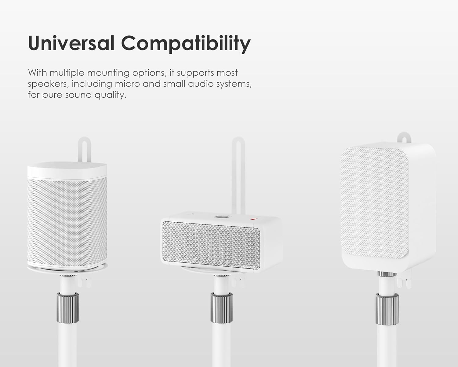 - 【Universal Compatibility】These universal speaker stands fit most bookshelf and satellite speakers (up to 11 lbs) with three mounting options: L-bracket, top plate, or clamp for perfect positioning with your audio setup.
