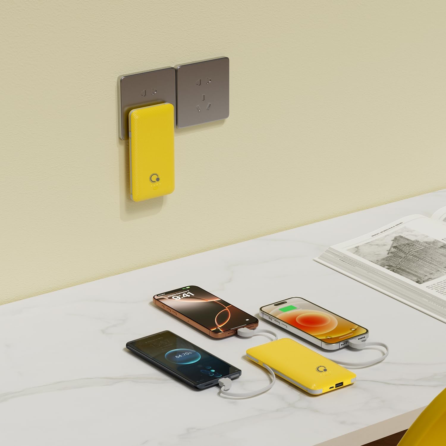 - [Slim and Compact Size Portable Charger]:Q External battery pack which make it easier to carry, built-in AC wall plug and cables are collapsible, will not give you too much trouble when carrying out