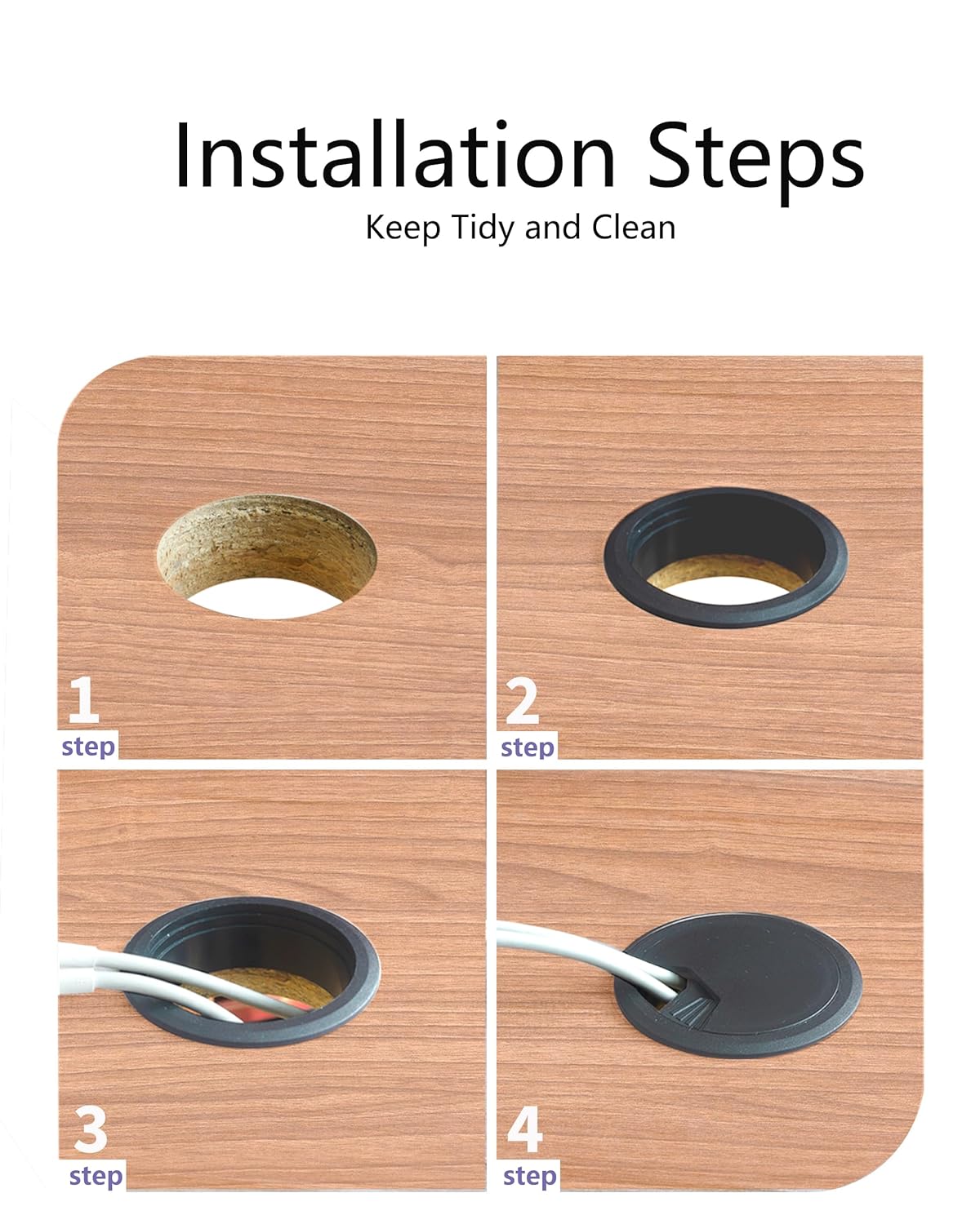 - Simple but Useful: By using hole saw, you can get a smooth and clean round cut, the cable hole cover provide a dedicated, clean pathway for you, protect your desk and cables from damage