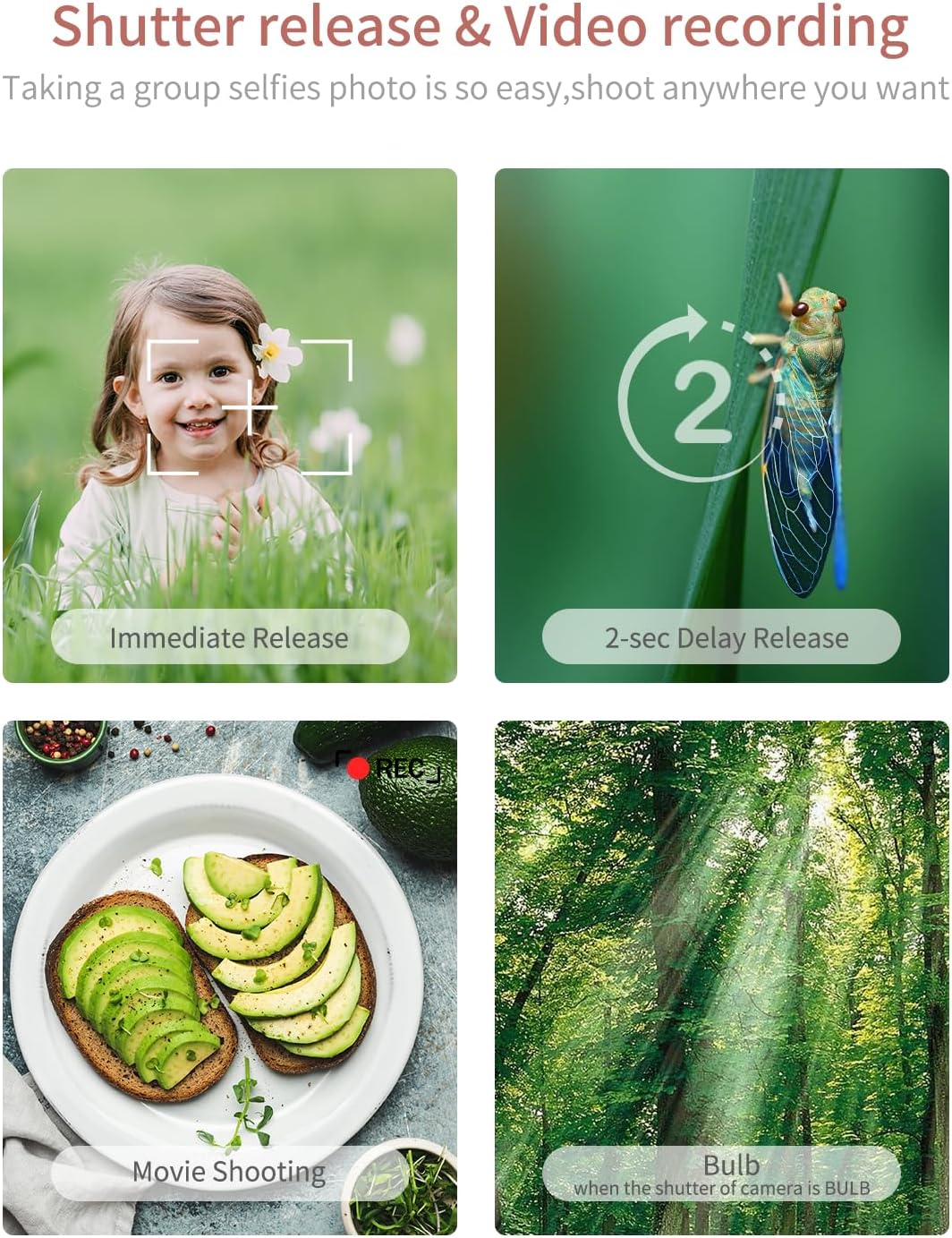- OLED display screen: This wireless remote shutter release clearly for canon shows all status indicators and function settings, enabling you to monitor operations, battery level, and pairing status at a glance.