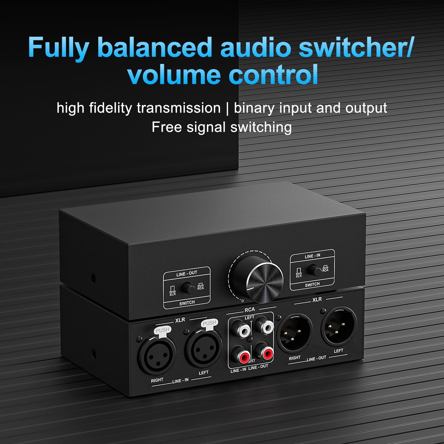 Y.D.F RCA and XLR Selector Switch Boxes, 2(1)-in-1(2)-Out RCA/XLR Speaker Switcher Selector, HiFi Balanced Stereo Audio Switcher/Converter Premium Selector Splitter Box with Volume Controller