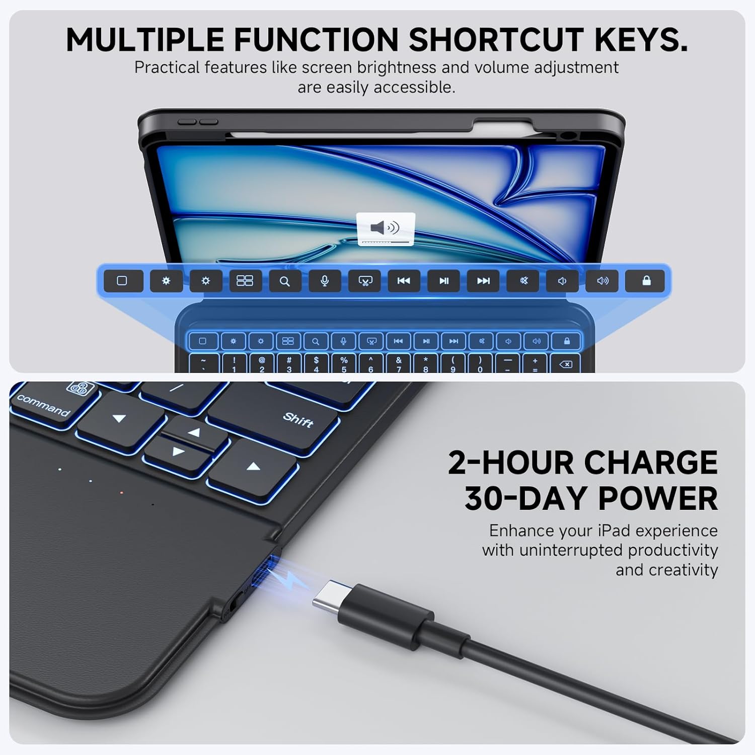 - 💗Detachable Magnetic Keyboard💗: Gesture supporting single, double, and triple-finger gestures for an intuitive and smooth interaction. Snap on/off like a magic keyboard iPad Pro 11in Case M4. Ideal for iPad keyboard with trackpad users needing desktop-level navigation.