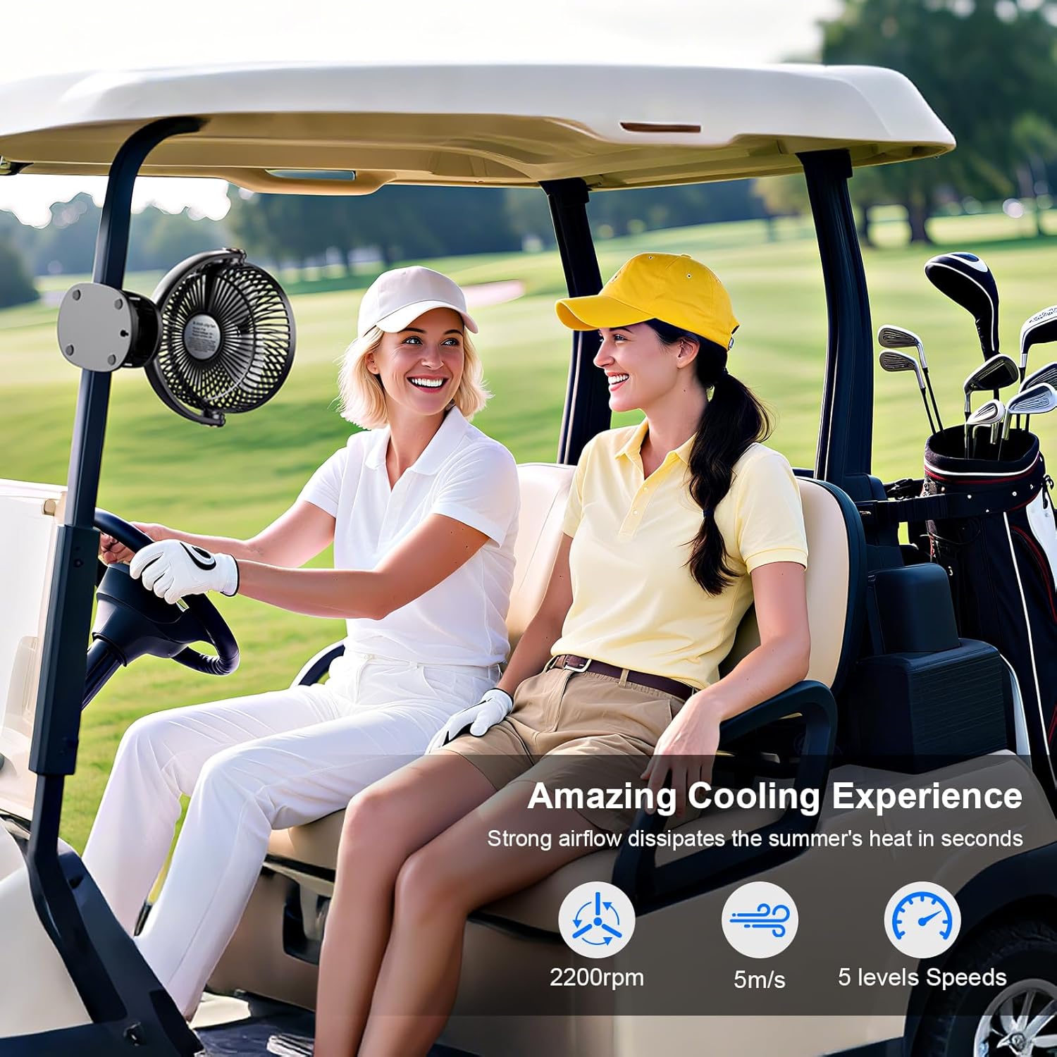 iNeibo 10000mAh Portable Clip on Fan, 90° Oscillating Fan, 8 Inch Rechargeable Battery Operated Desk Fan, Strong Airflow, 5 Speeds, Sturdy Clamp for Golf Cart Home Office Outdoor Travel (Black)