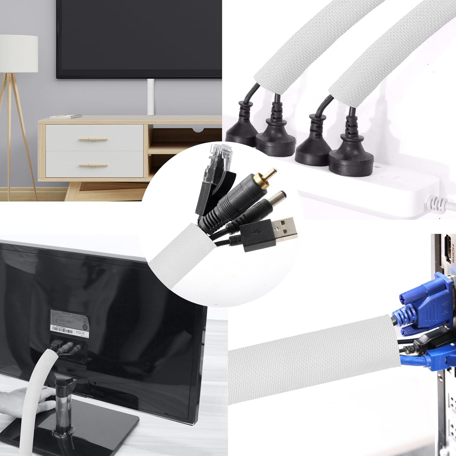 - Easy To Install - Split design, easy to wrap around cords without any hassle and the cord protector can be easily cut to any desired length.