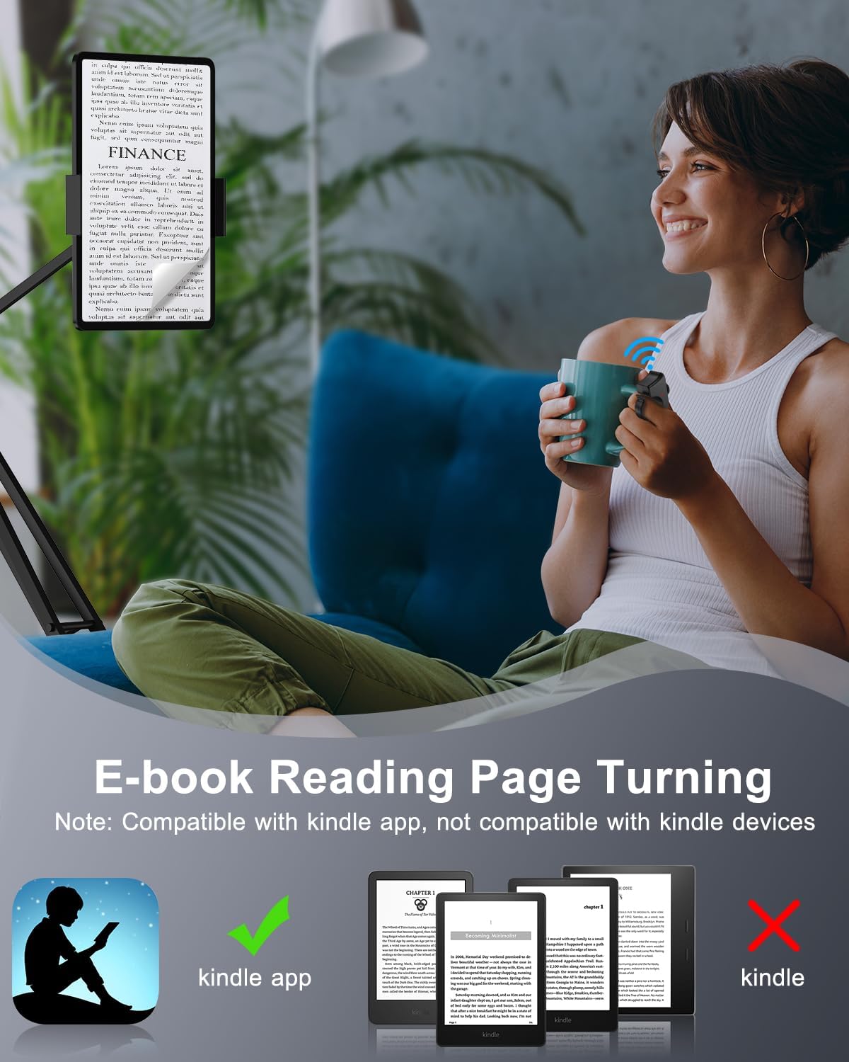 - E-Book App Page Turner - Effortless Reading Control: Say goodbye to constant touchscreen taps. With just a simple button press, turn pages on your favorite e-reading apps, including Kindle. Note: This device is compatible with reading apps, but not with dedicated e-readers like Kindle, Paperwhite, Oasis, or Kobo