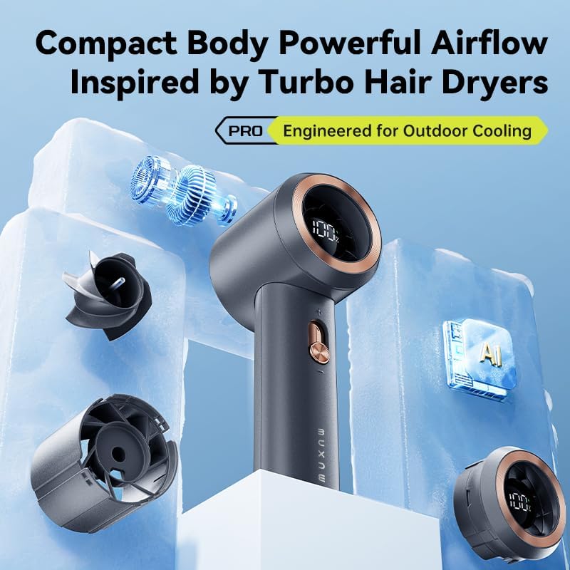 - Mini turbo jet fan: It features a 100 Level high-speed, powerful 10 m/s airflow, powered by a 3-phase brushless electric motor running at 13,000 RPM, delivering fast and strong performance. With adjustable speed (1-100 levels) and a bladeless design, it ensures safety for kids and teens.