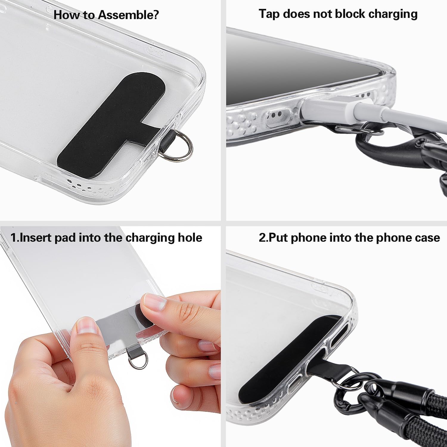 - 【Universal & Easy to Install】No tools required. Manually insert the pad into the charging port of the fully covered phone case, then insert the phone and connect it to the lanyard. Note: Not support half-covered phone cases.