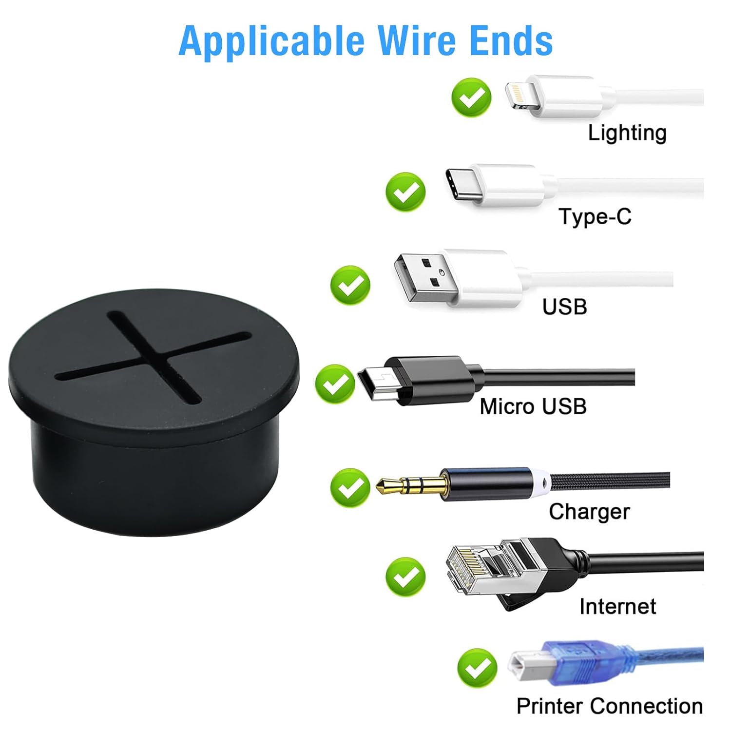 - Maintain Safety: The desk wire hole insert helps to organize cables on your desktop, keeping it tidy and improving productivity; Cable grommet smooth surface protects cables from sharp edges, reduces bending and pulling of cables, extends cable life and ensures a safe work area