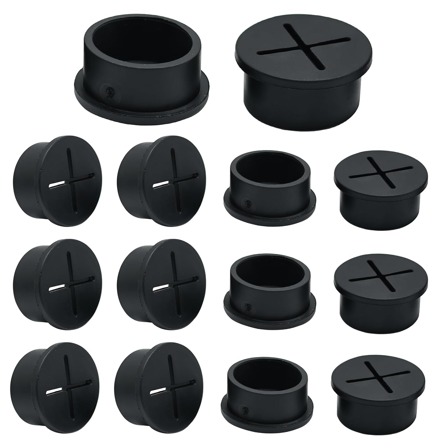 - Dimension and Quantity: 15 black desk grommets, + shape desk cord hole cover 3/4 inch (20 mm) diameter, 15/16 inch (24 mm) overall diameter, 1/2 inch (12 mm) height, 9/16 inch (15 mm) through-hole diameter, 5/64 inch (2 mm) thicker