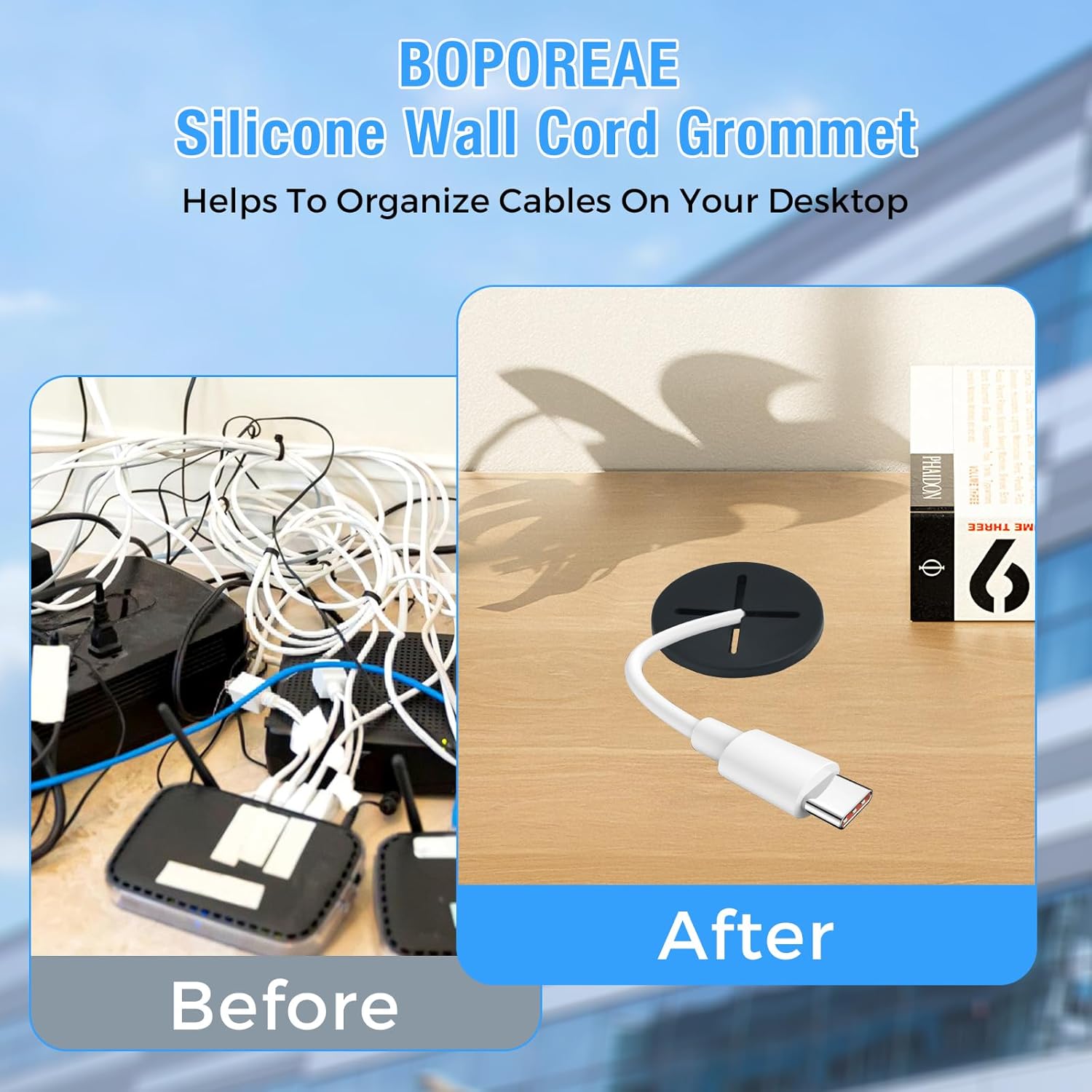- Premium Material: BOPOREAE desk hole cover for cables is made of flexible silicone and soft rubber material that surface is easy to clean and maintain; The rubber grommets for wiring has corrosion resistance, insulation, heat resistance and good comprehensive performance,wear-resistant, sturdy and durable to use
