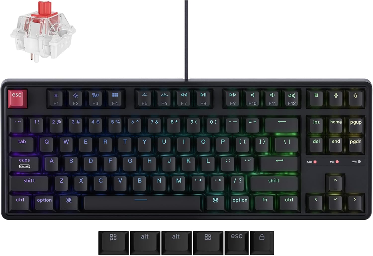 Keychron C3 Pro TKL 80% Wired Mechanical Keyboard, 8K Polling Rate, QMK/VIA Programmable, Hot-Swappable, RGB Backlit Shine-Through Keycaps, Super Red Switch, for Windows/Mac