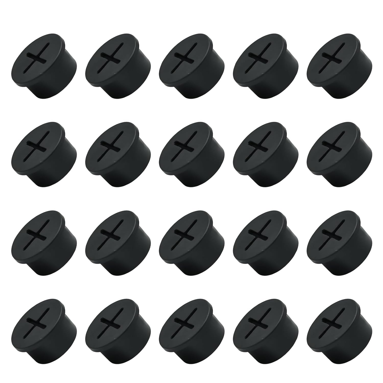 - Package & Size: Each package includes 20 durable rubber wire grommets designed for 3/4 inch (20 mm) desk cord holes. These grommets feature a 9/16 inch (15 mm) through-hole opening, a 15/16 inch (24 mm) overall diameter, and a 1/2 inch (12 mm) height with a reinforced 5/64 inch (2 mm) thick