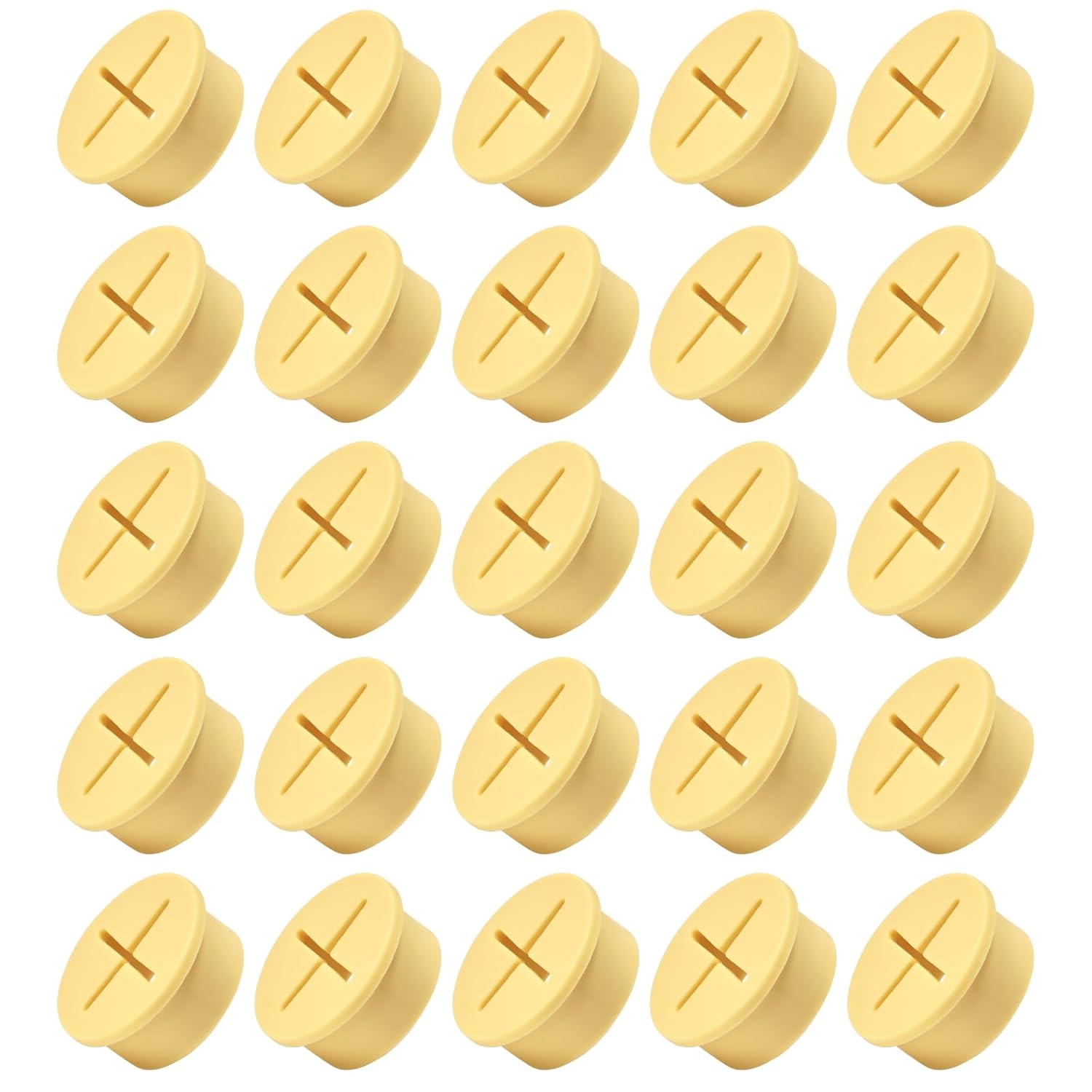 20Pcs Desk Grommet, 1" (25mm) Yellow Silicone Cord Hole Cover, Flexible Rubber Wire Grommets, Wall Grommets for Cables Management, Table, Countertop, Cabinets and Furnitures Wire Organizer