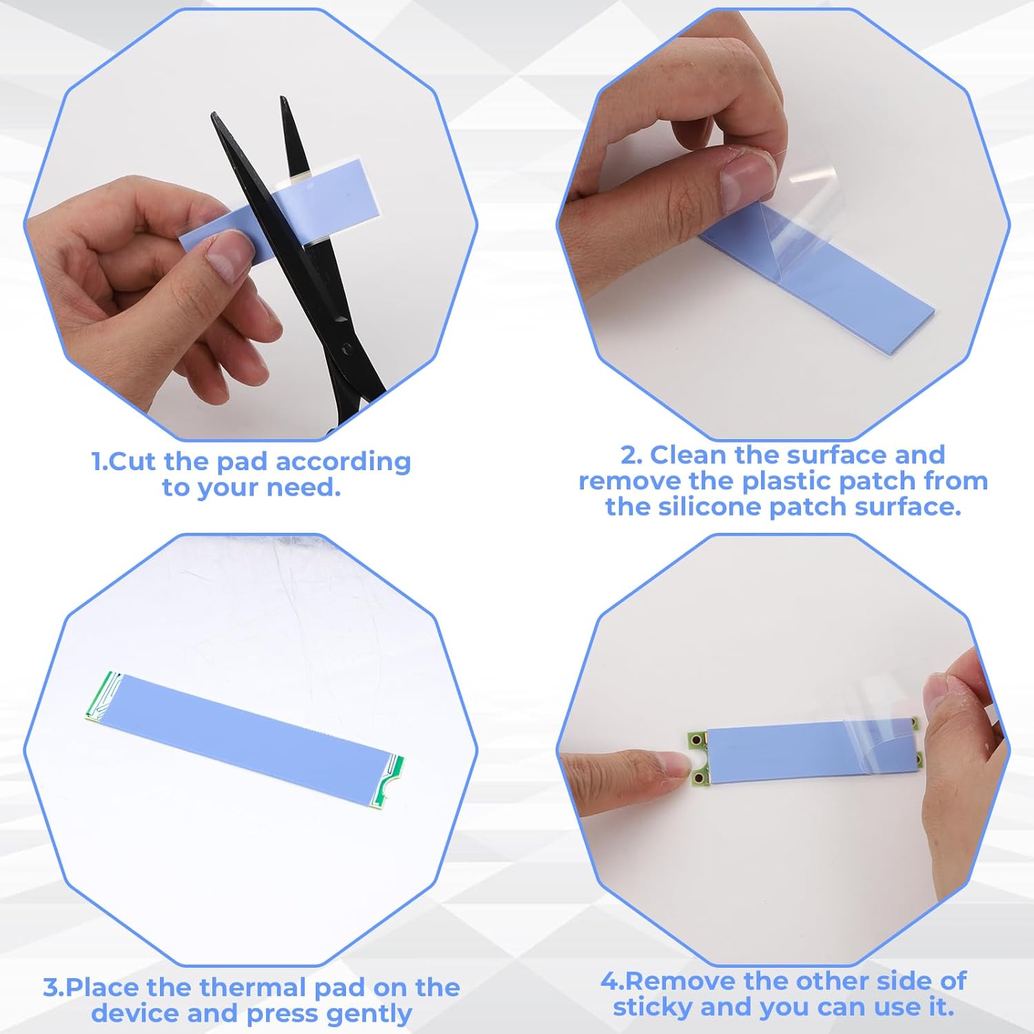 - Wide Applications:These thermal silicone pad are ideal for a wide range of cooling applications, including laptop heatsinks, CPUs, GPUs, LED coolers, control boards, motors, computer hosts, game consoles, and various other electronic cooling modules.
