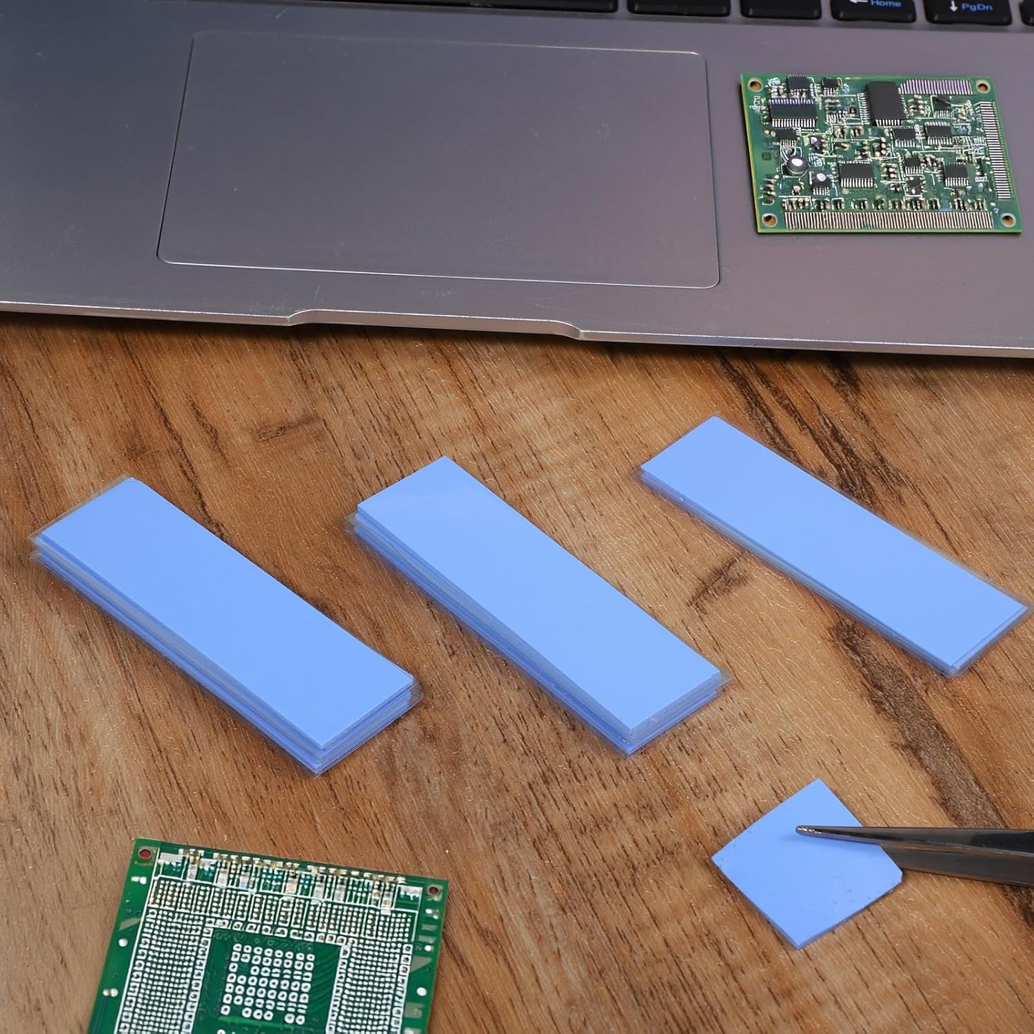 - Abundant Quantity: 30 pieces of blue thermal pads are included. There are three thicknesses to choose from - 0.5mm, 1mm and 1.5mm, 10 pieces of each size (20x67x0.5mm, 20x67x1.0mm, 20x67x1.5mm). This variety is enough to meet various needs.