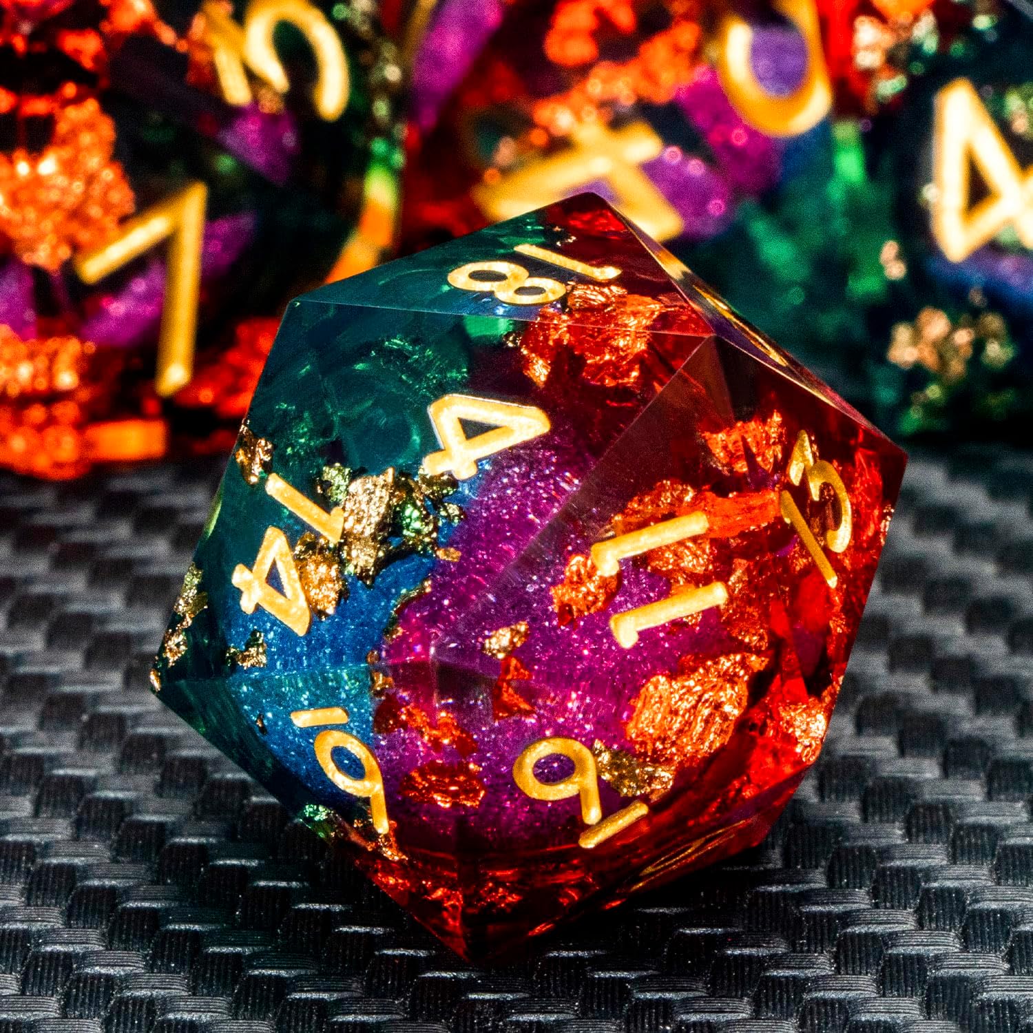 - 【Exceptional Handmade】:Each sharp dice is hand sanded and polished. The numbers on the dice are clear and easy to read, with perfect details and well-made. We use high-quality resin to make dice, odorless, non-toxic, strong, safe. The polyhedral dice have no bubbles and are excellent balanced for a great gaming experience.