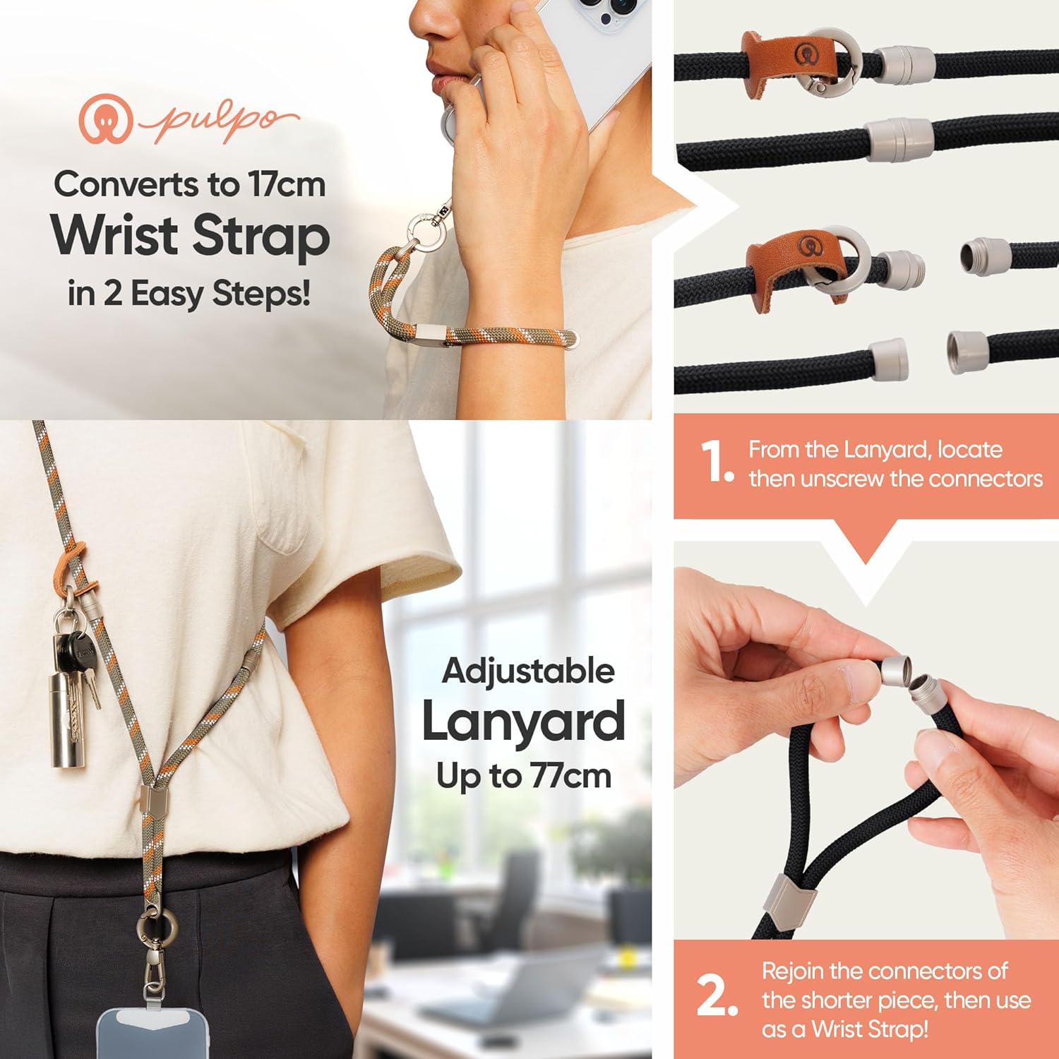 - VERSATILE 2-IN-1 DESIGN: The Pulpo Wrist Strap and Lanyard offers two practical carrying options โ a secure wrist lanyard for phone and a wearable phone lanyard wrist strap travel safety. Our adaptable 2-in-1 phone wrist strap allows you to quickly and effortlessly switch between a neck lanyard and a wrist strap to suit your needs. Ideal for everyday use, travel, outdoor activities, or as an anti theft phone strap for travel. Available in a variety of colors to suit your style.