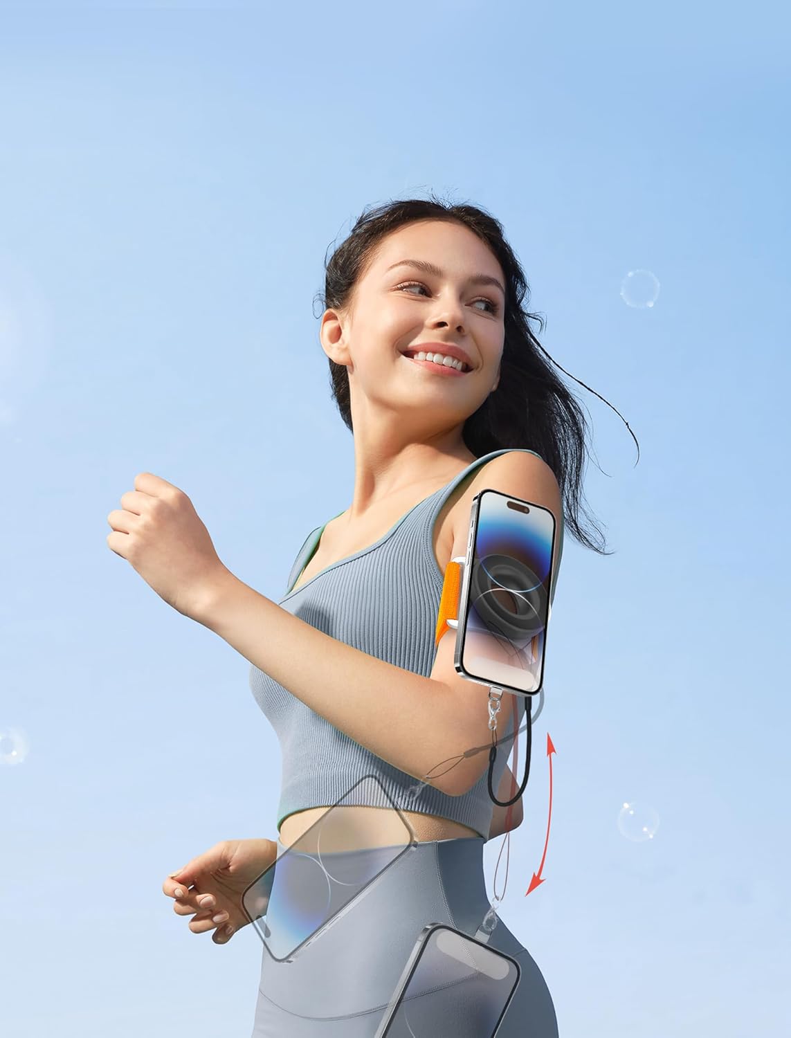 - [Optimal Magnetic Balance]: The magsafe armband utilizes 20 N52 grade neodymium magnets with upgraded magnetic force, which ensures that your phone stays firmly in place. And it's easy and effortless to pick up and put down during use!This would make an awesome new year's gift for your exercise-loving self or family and friends!