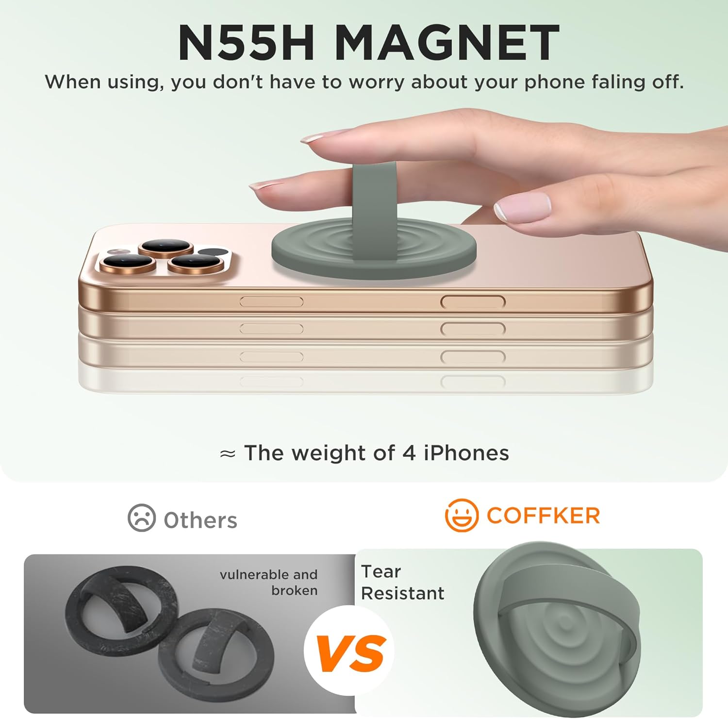 - 【Tips】This is a one-sided magnetic phone ring holder, not compatible with magnetic car mounts or wireless charging—remove before using these devices. COFFKER's 24/7 customer support, you can be sure of professional assistance whenever you need it - because we believe your experience should be as excellent as our product