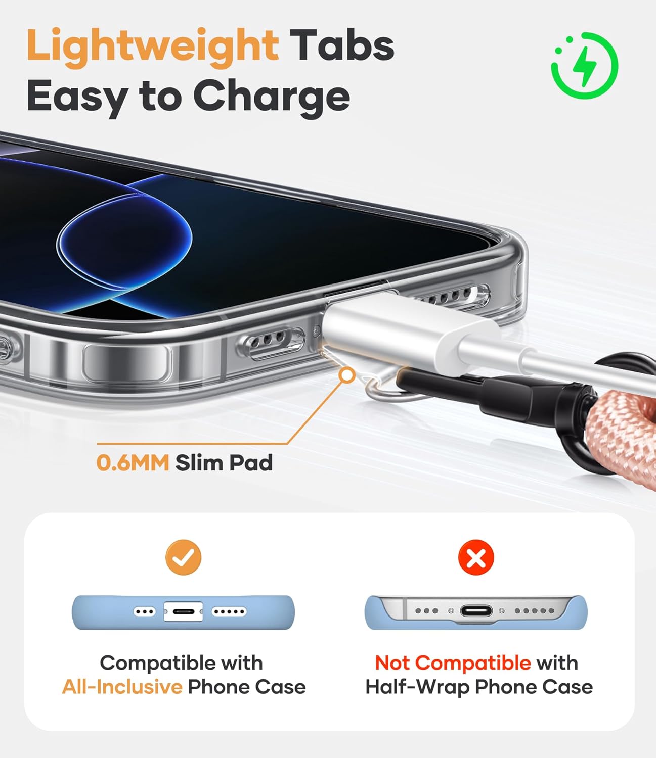 - [Universal Fit, Installation NO Worries] Please confirm the case model before ordering. Our phone chain suitable for iPhone Series, Samsung Galaxy S/A Series full-coverage phone case (sorry, not for half-coverage case). It's not just a lanyrd for phone! Key, headphones, sunglasses - you can easily hang them all. Our including 1X lanyard + 2X TPU phone tabs + 1X Keychain. Easy Installation – just slip one of the included tab inside your existing phone case (without interfering with charging)
