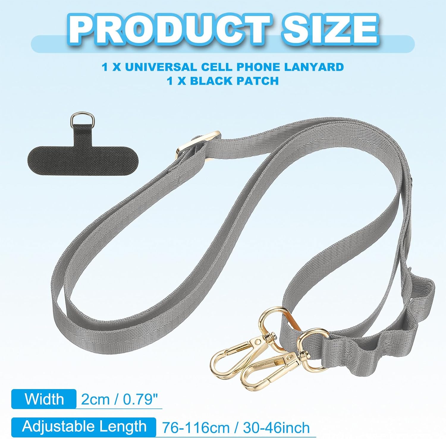 - Specification: Color: Grey; Material: Polyester; Width: 2cm / 0.79 inch; Adjustable Length: 76-116 cm / 30-46 inch; Packing List: 1 x Universal Cell Phone Lanyard, 1 x Black Patch