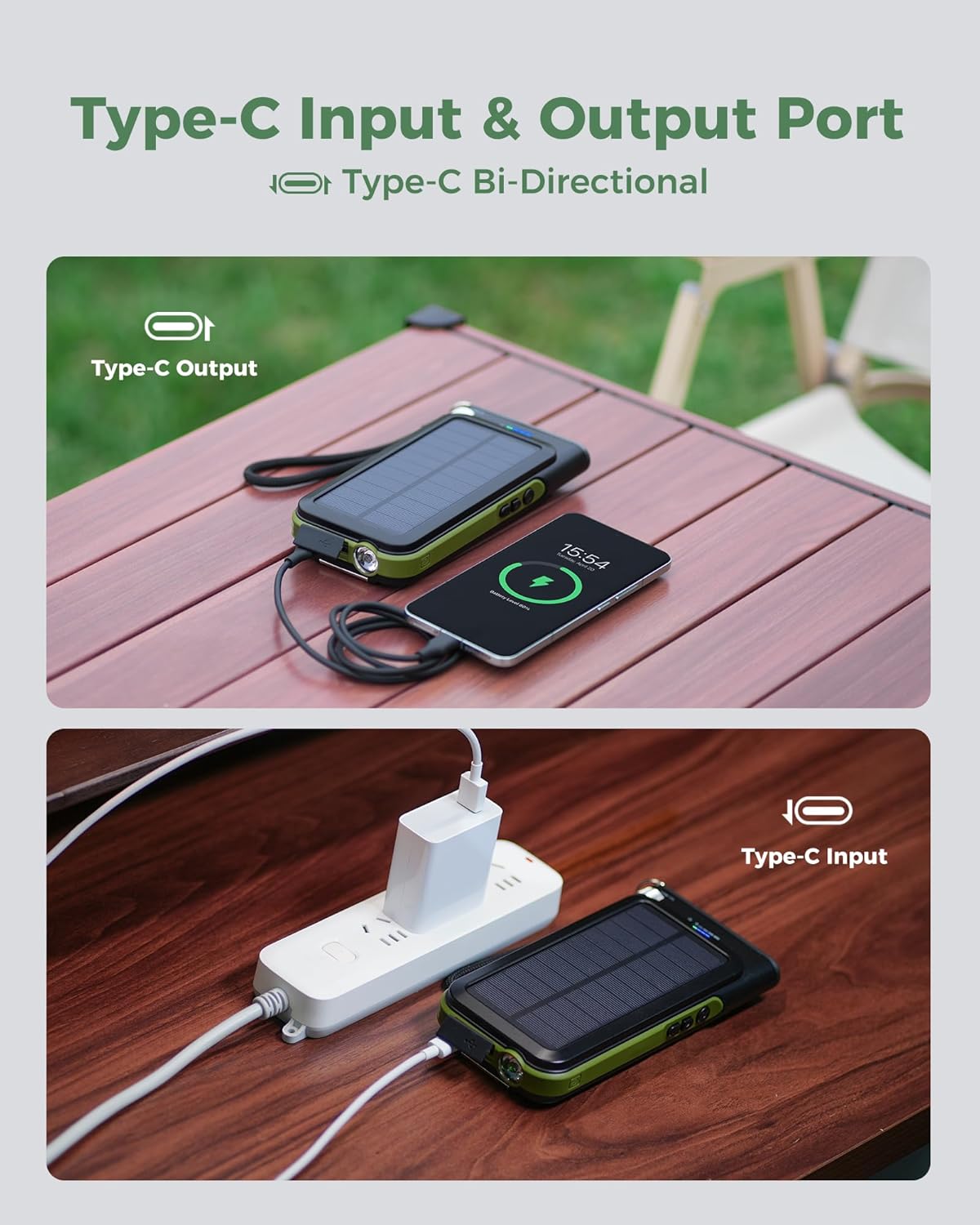 - [Advanced Wireless Charging] This solar charger power bank supports advanced wireless charging, compatible with all Wireless-enabled mobile devices. Such as iPhone 16/15/14/13 series, Samsung Galaxy S23/S22/S21 series, etc. Put your device on the wireless charging area, it gets charged immediately. Come and enjoy your cable-free charging time.