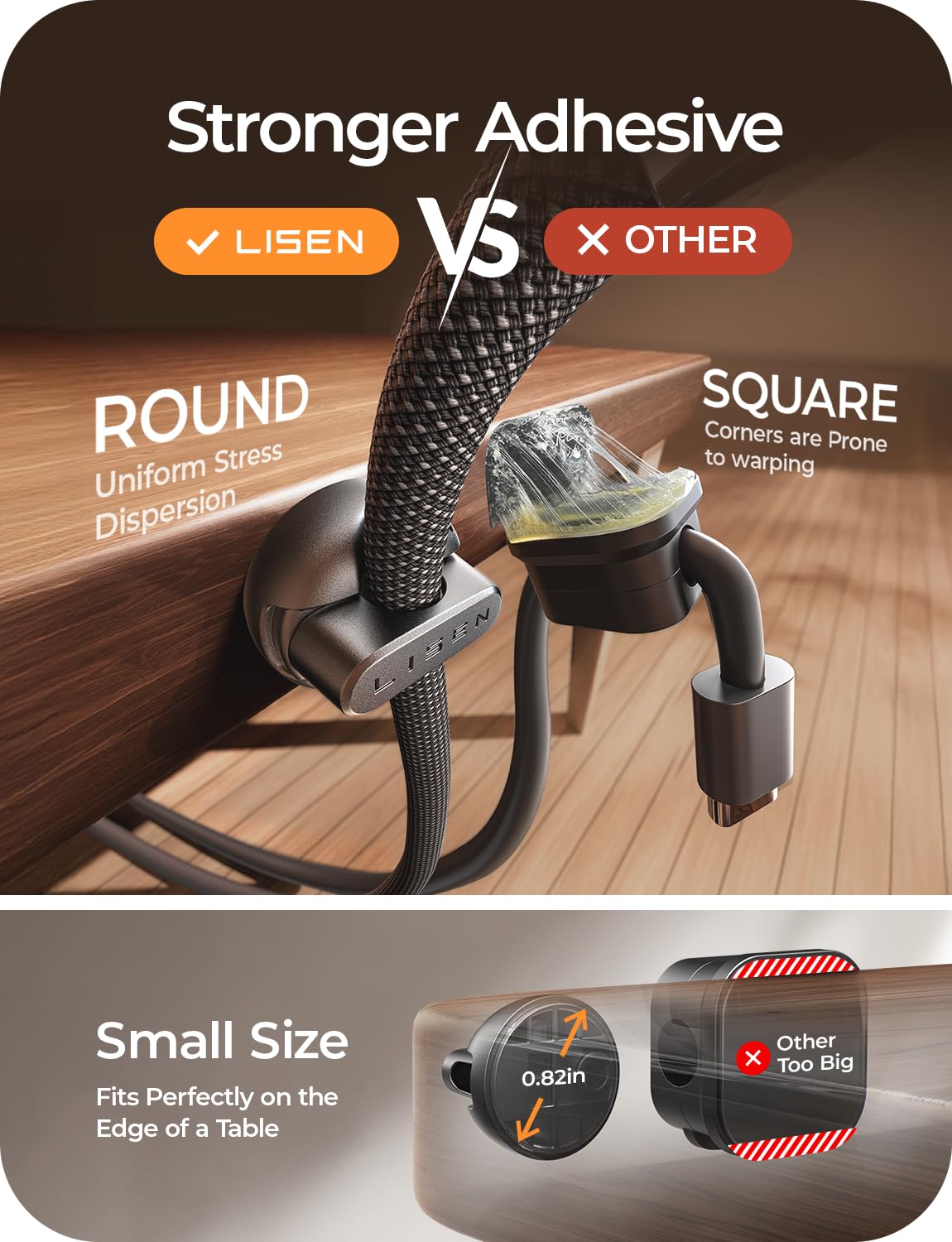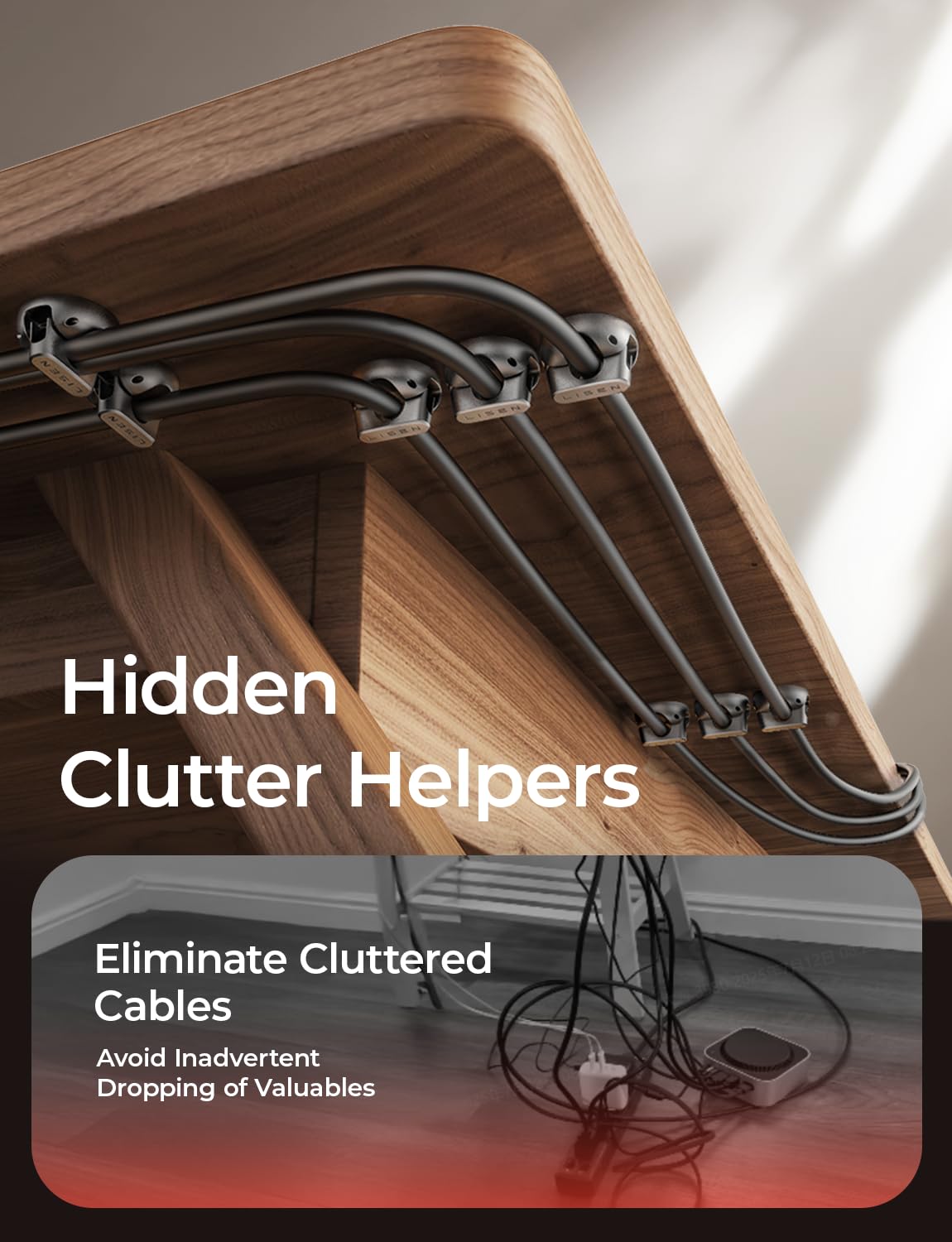 - 【2025 Minimize Space】: Measuring just 0.85" x 0.85" x 0.55" and weighing only 3g, 28% smaller than others. LISEN cold holder is perfect for narrow spaces. With 10 individual clips included, you can neatly arrange cables on desks, nightstands, walls, or in your car. This versatile organizer with slick design is a must-have accessory for keeping your space clean and clutter-free.