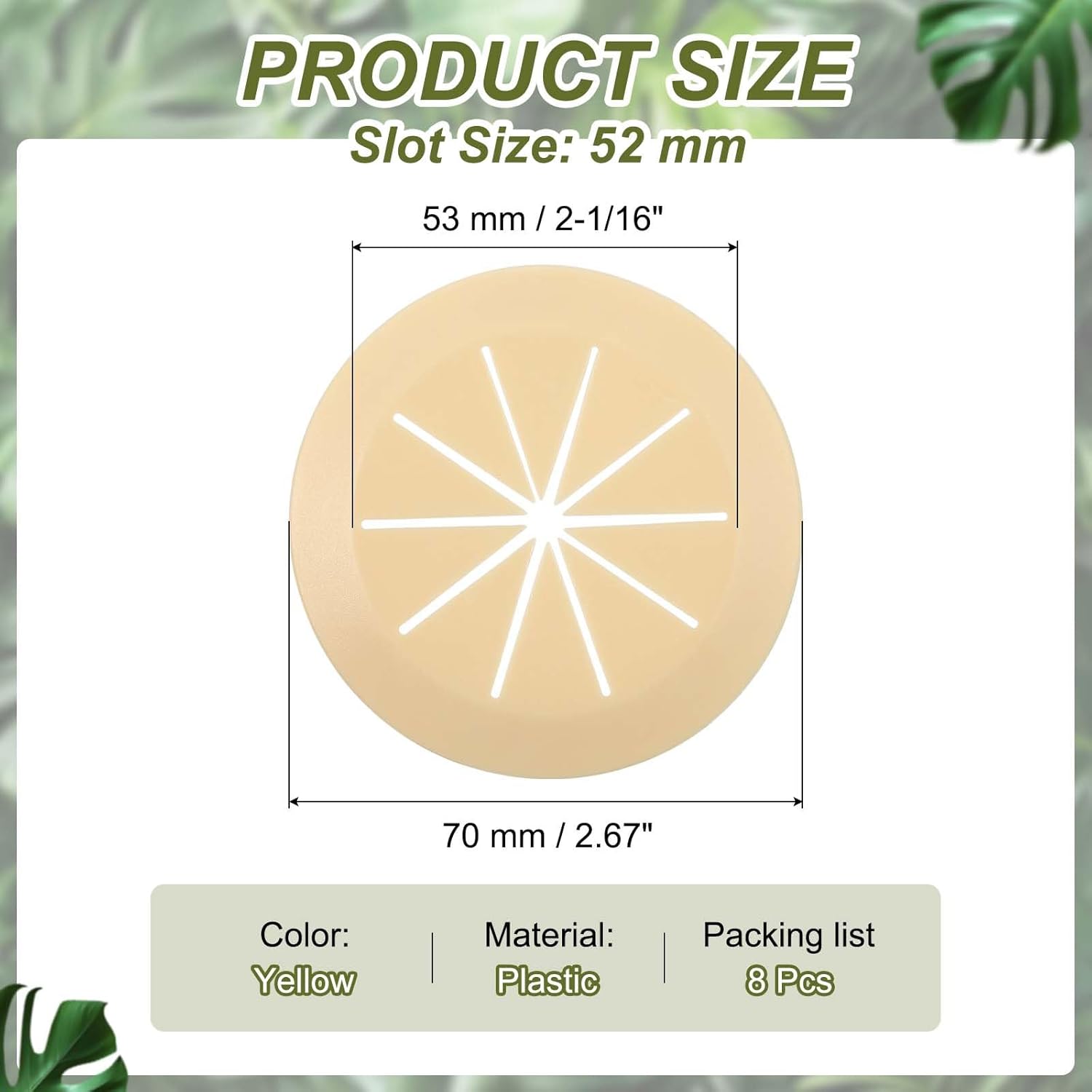 - Color: Yellow; Material: Plastic; Inner Diameter: 53 mm / 2-1/16"; Slot Size: 52 mm / 2.05 inch; Total Size: 70 mm / 2.76 inch; Packing List: 8 Pcs x Desk Grommet