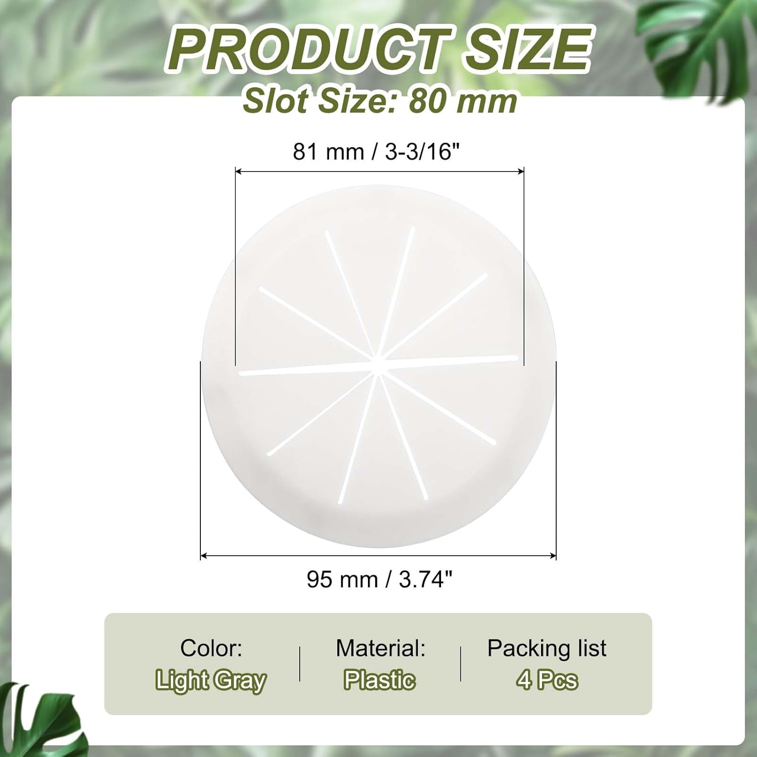 - Color: Light Gray; Material: Plastic; Inner Diameter: 81 mm / 3-3/16"; Slot Size: 80 mm / 3.15 inch; Total Size: 95 mm / 3.74 inch; Packing List: 4 Pcs x Desk Grommet