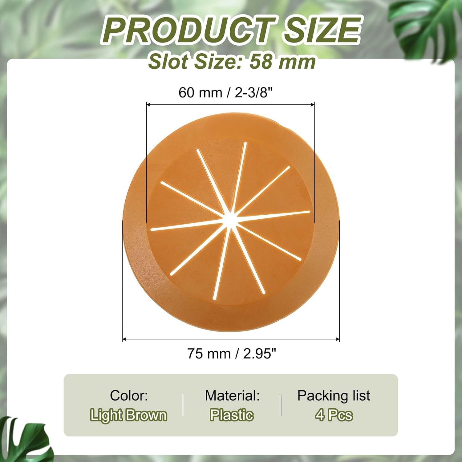- Color: Light Brown; Material: Plastic; Inner Diameter: 60 mm / 2-3/8"; Slot Size: 58 mm / 2.28 inch; Total Size: 75 mm / 2.95 inch; Packing List: 4 Pcs x Desk Grommet