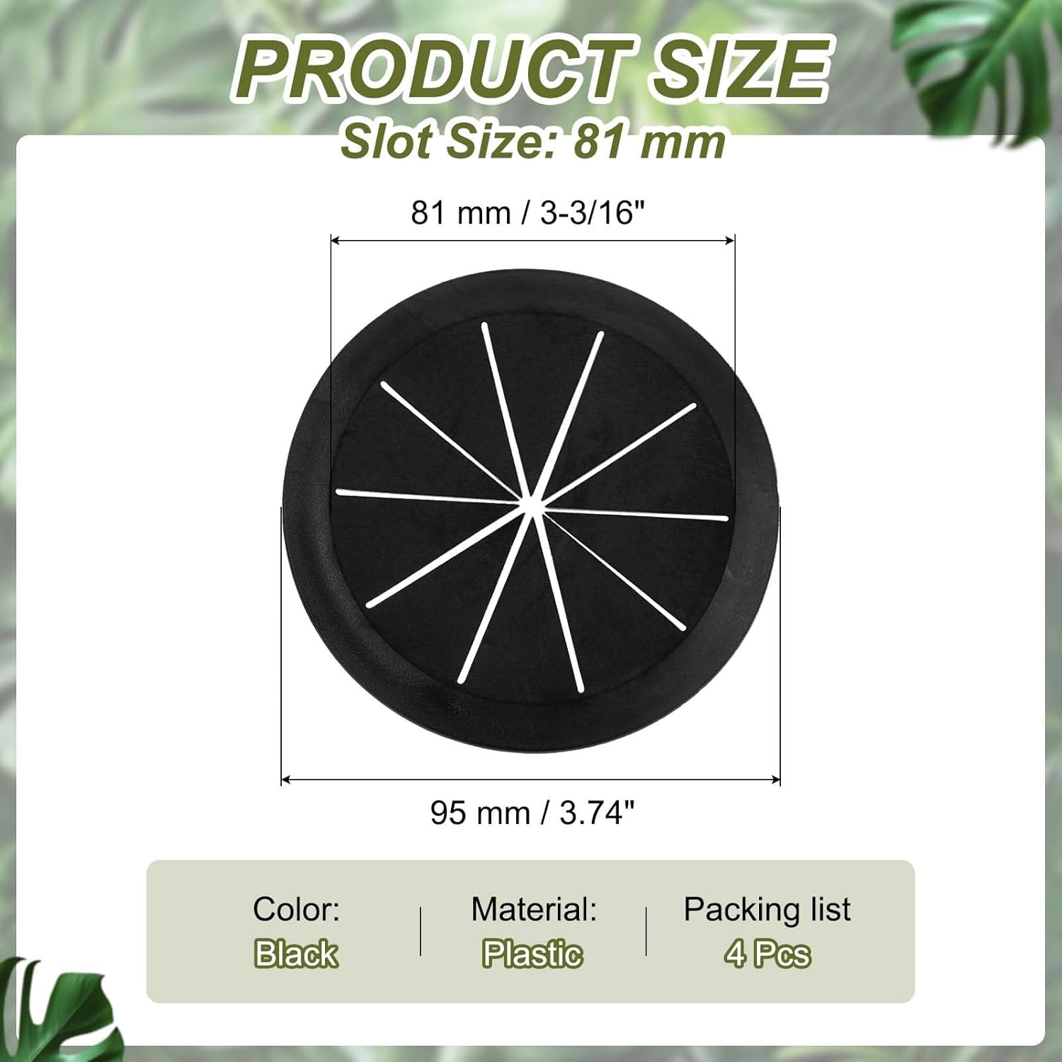 - Color: Black; Material: Plastic; Inner Diameter: 81 mm / 3-3/16"; Slot Size: 80 mm / 3.15 inch; Total Size: 95 mm / 3.74 inch; Packing List: 4 Pcs x Desk Grommet