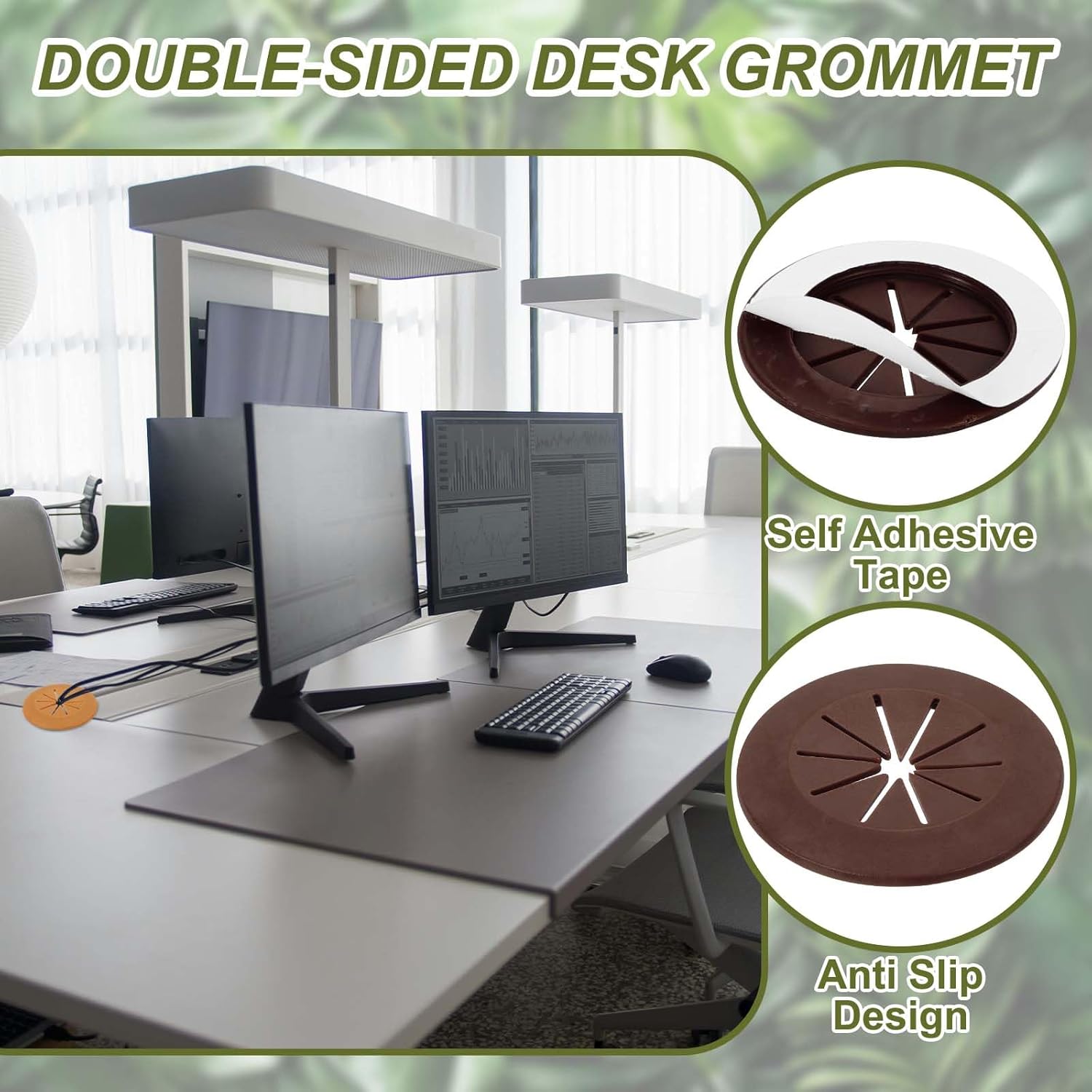 PATIKIL Desk Grommet 1-9/16", 8 Pcs Round Cable Grommet Cord Hole Cover with Adhesive Tape Flexible Table Wire Organizer for Office Home Table Countertop, Deep Brown